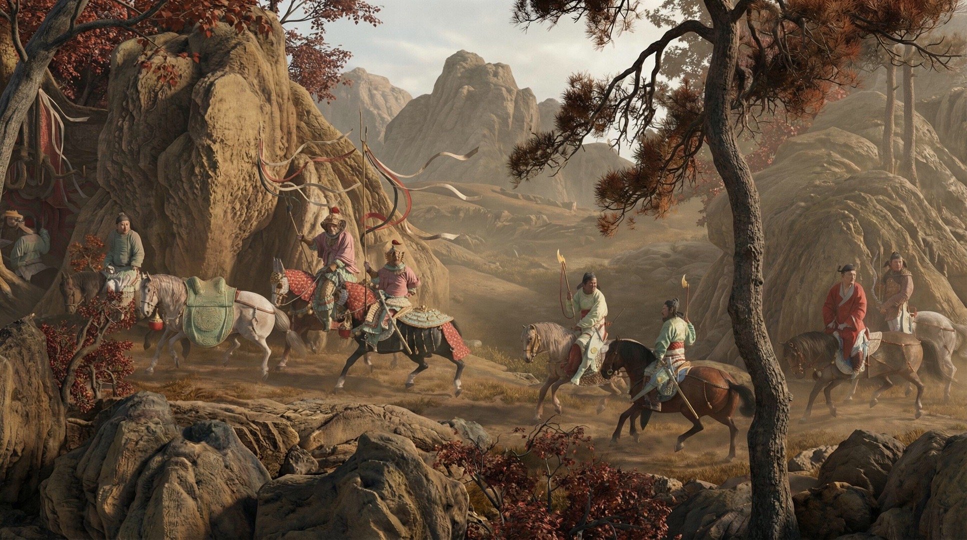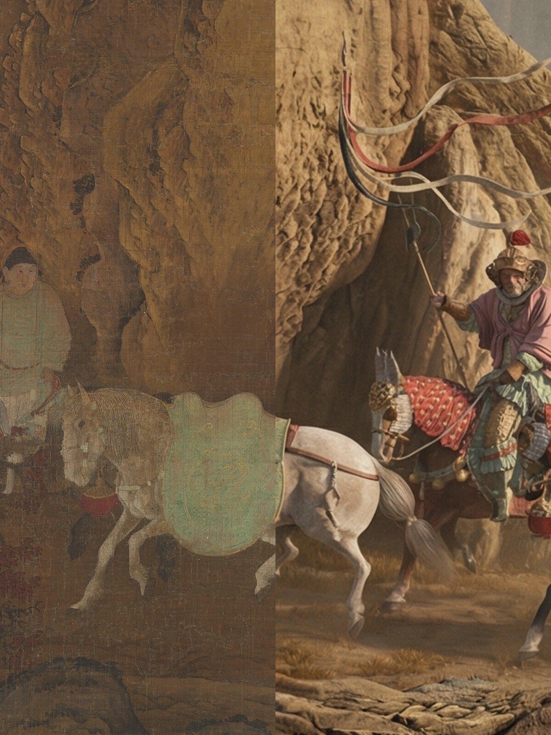 南宋《明皇幸蜀圖》大都会博物馆 | 这幅画描绘了杨贵妃被处决后庄重的皇室随从。ai创造营