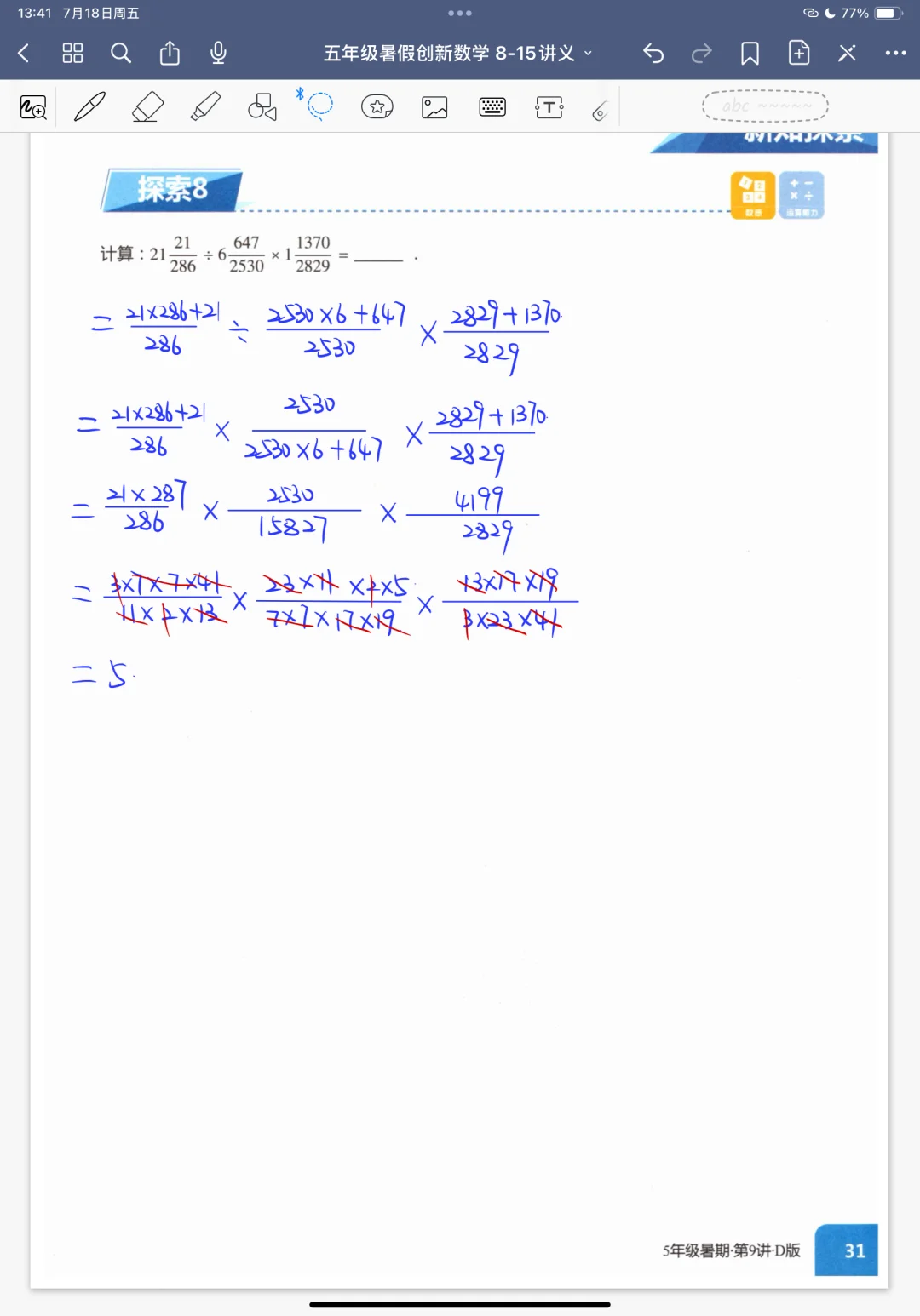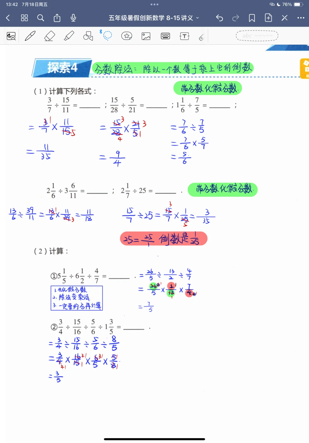 《分数乘除》五年级暑假奥数创新班课堂笔记