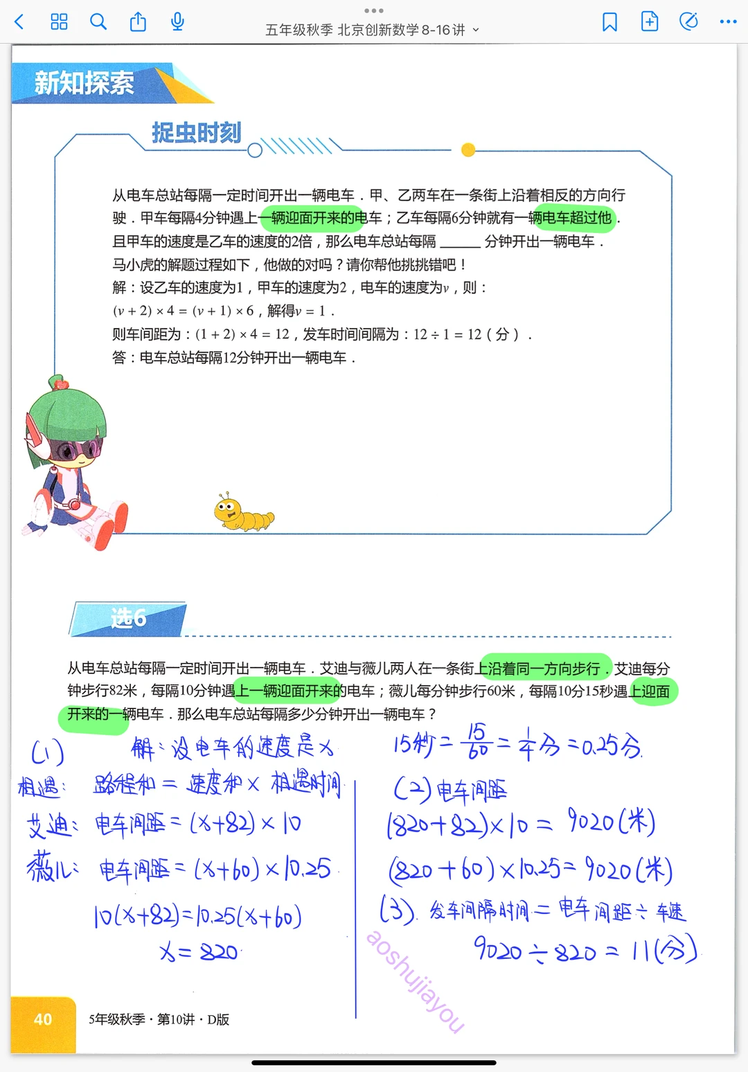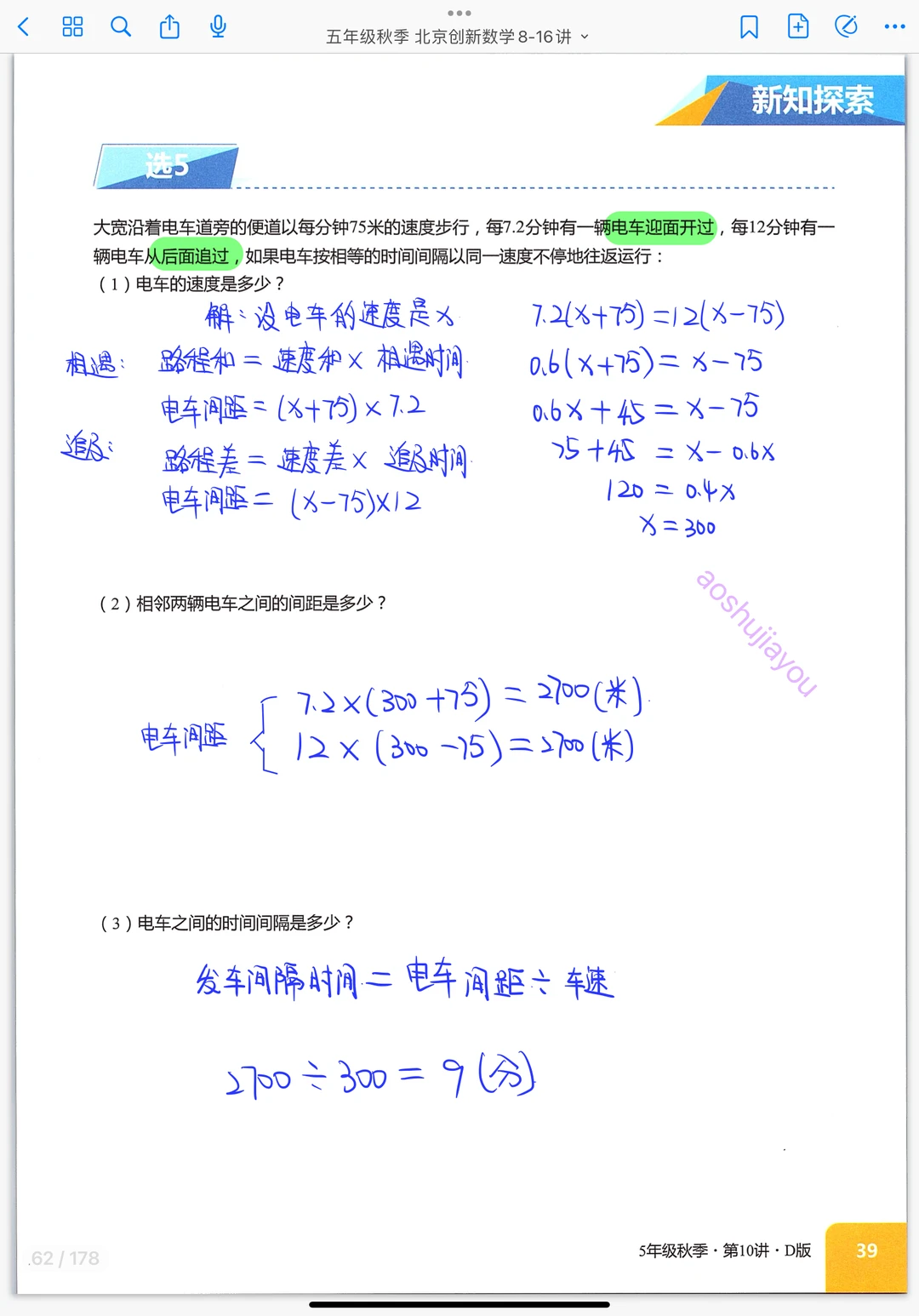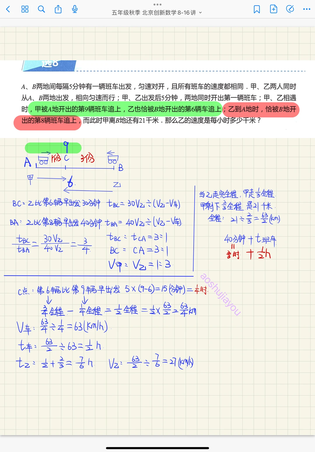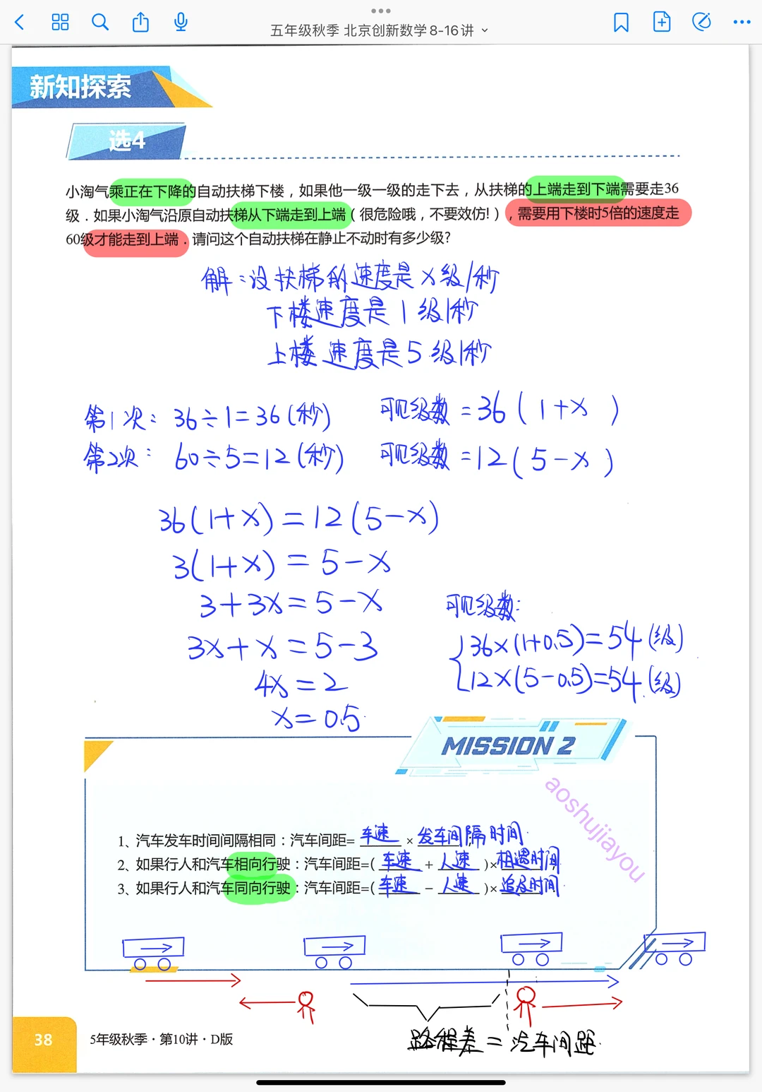 《扶梯与发车》五年级秋季创新班奥数课堂笔