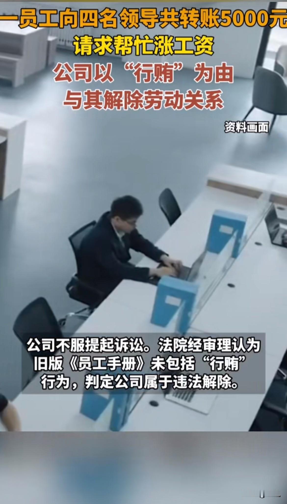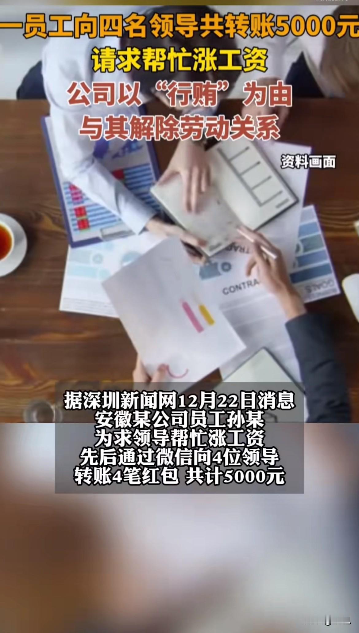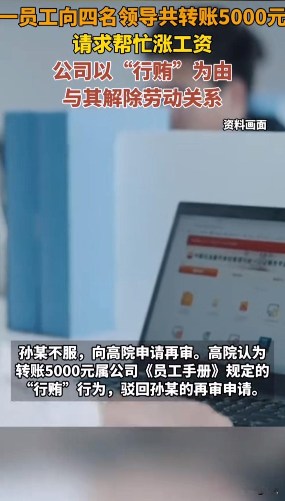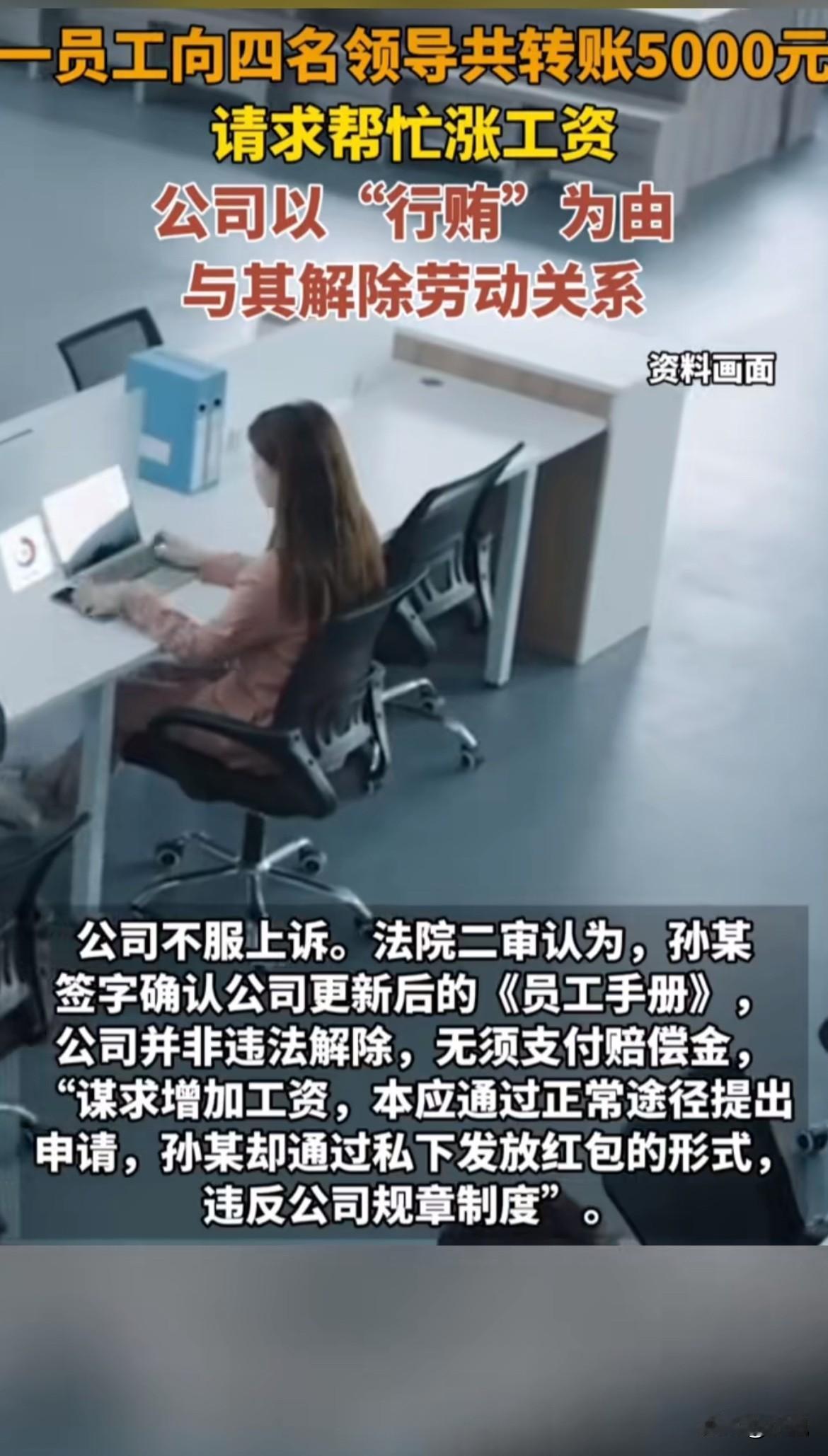 月薪3850块,为了涨工资,他给四个领导微信转账,一共发了5000块钱红包。结果工资没涨成,人却被公司开除了。 2017年安徽合肥一家物业公司的员工孙某,分别给四位领导转了账,有2000的,也有1000的,每次转账还都附上留言,求领导帮忙协调加薪。他觉得这也许是条“捷径”。 公司发现后,直接甩出一纸《解除劳动合同通知书》,说他这是“行贿”行为,严重违反了公司规定,当天就把他开除了。孙某觉得冤,自己一个月工资才3850,倒贴5000求加薪,怎么就成了“行贿”?他申请了劳动仲裁。仲裁委支持他,判公司违法解除,要赔他两万三千多块钱。 公司不服,官司一路打上去。一审法院认为,公司旧版的《员工手册》里根本没有“行贿”这个条款,新版的制定程序也有问题,所以判公司赔钱。 但事情在二审时反转了。法院查明,孙某其实签收过新版《员工手册》,里面明确禁止任何形式的“行贿”行为。法院认为,孙某私下发红包的行为,严重扰乱了公司管理秩序。公司解除合同前也经过了工会同意,程序合法,所以改判公司不用赔钱。 孙某还是不服,申请到安徽省高院再审。高院的裁定给这件事定了性:孙某的行为虽然不构成刑法上的行贿罪,但完全符合他所在公司《员工手册》里规定的“行贿”情形。最终,高院驳回了他的再审申请。 一个员工想走“偏门”谋点好处,没想到公司规章制度这把尺子量得这么准。法院的判决也清楚表明,职场上有些“小聪明”,代价可能远超你的想象。