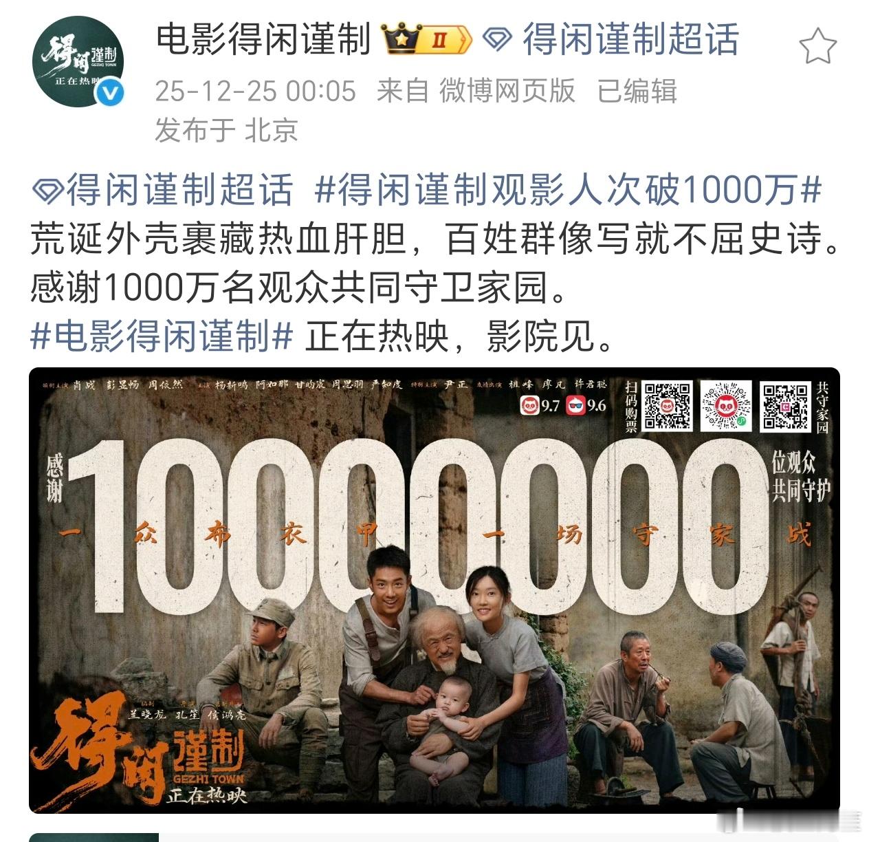 《得闲谨制》观影人次破千万了!恭喜!得闲谨制观影人次破1000万