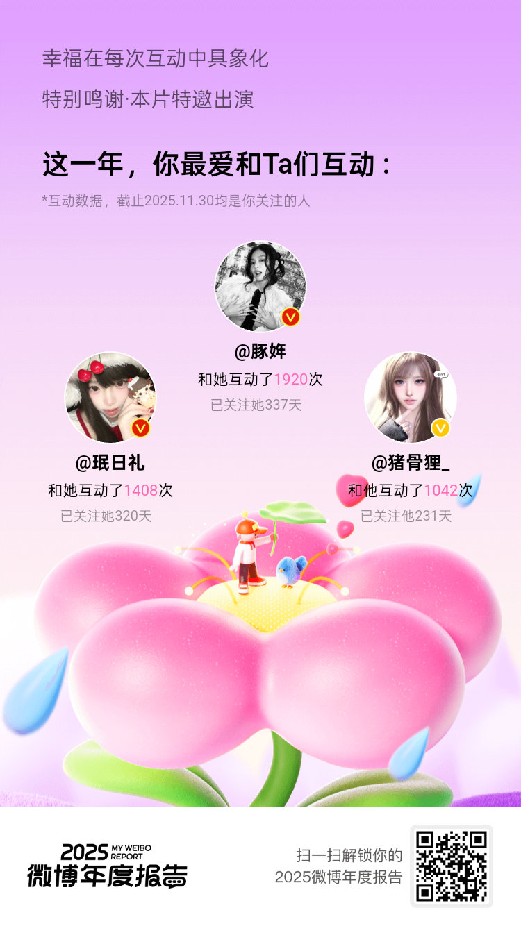 微博年度报告 2025年总是喜欢和你们互动:这大概就是明晃晃的“偏爱”吧!新的一年,这份偏爱依旧为你保留!2025微博年度报告