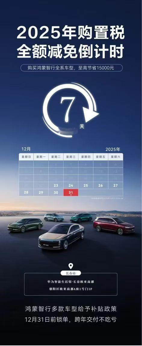 购置税补贴政策倒计时7天那说明今年应该也就剩下七天了