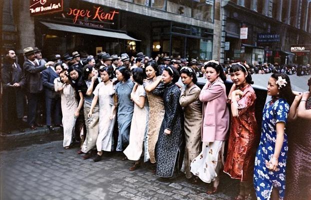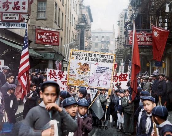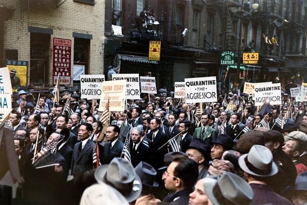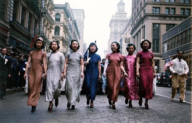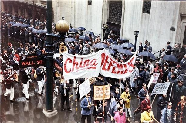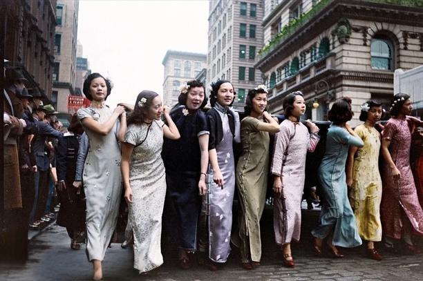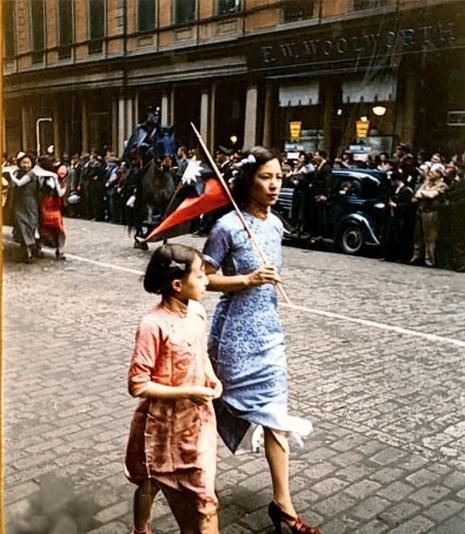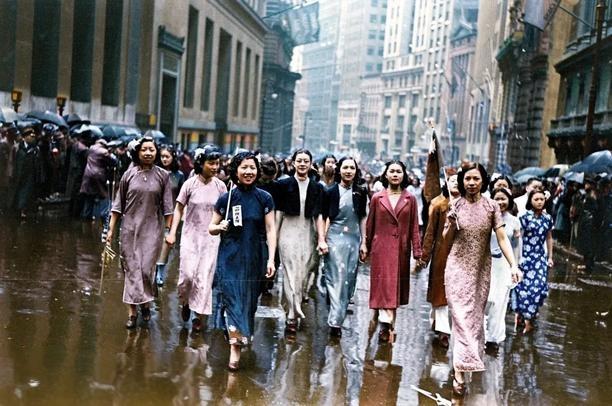 该组照片为1938年5月9日纽约华侨们为抗议日本侵略中国举行游行的真实照片。