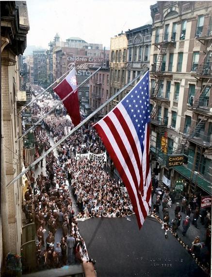 当天,位于纽约市的华侨商店全部关闭,包括曼哈顿的1500多家洗衣店和餐厅。游行队伍非常庞大,轰动一时,媒体纷纷报道,说“五彩纸屑从唐人街的窗户流下来,洒在狮子、花车和军乐队上。”
