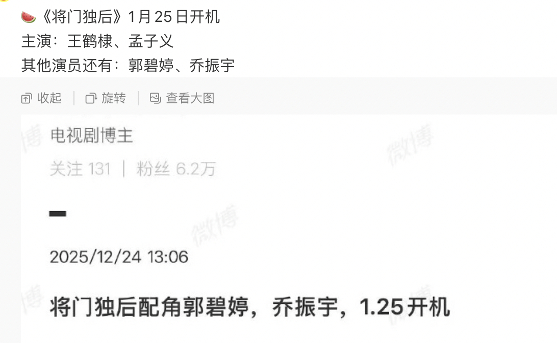 将门独后明天官宣,除了王鹤棣、孟子义、乔振宇,竟然还有郭碧婷,这是婚后影视首秀?