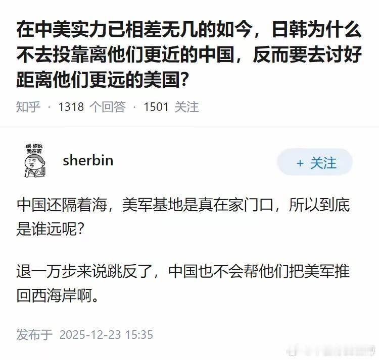 在中美实力已相差无几的如今,日韩为什么不去投靠离他们更近的中国,反而要去讨好距离他们更远的美国?