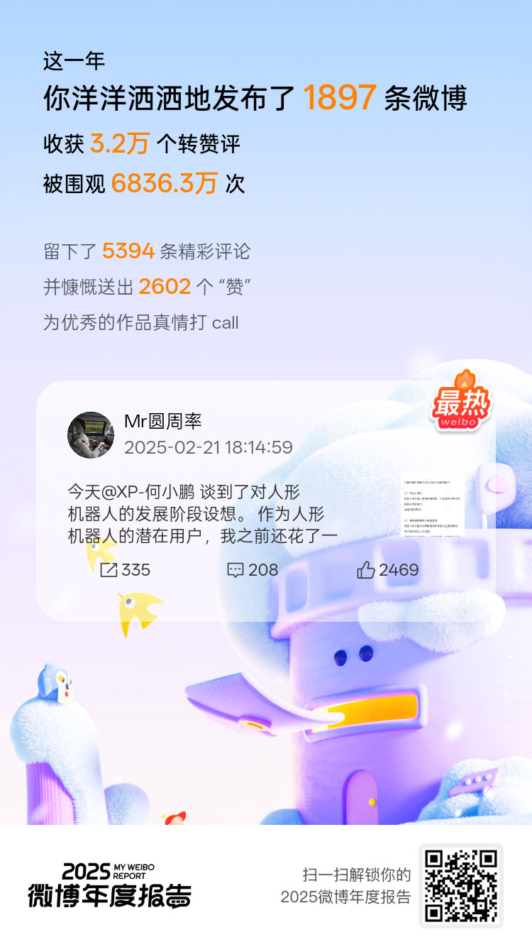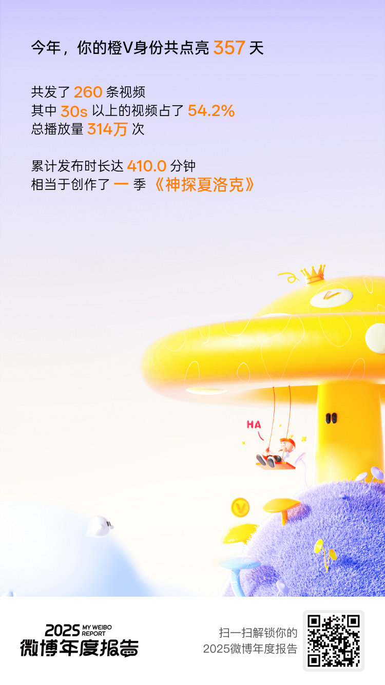 微博年度报告 实力这一块,咱确实拿捏了!2025年稳稳保持橙V身份357天!相逢的意义在于彼此照亮,这份成绩单离不开你们一直以来的支持和陪伴!你的专属年度播报也已生成,速来>>2025微博年度报告 围观!微博之夜