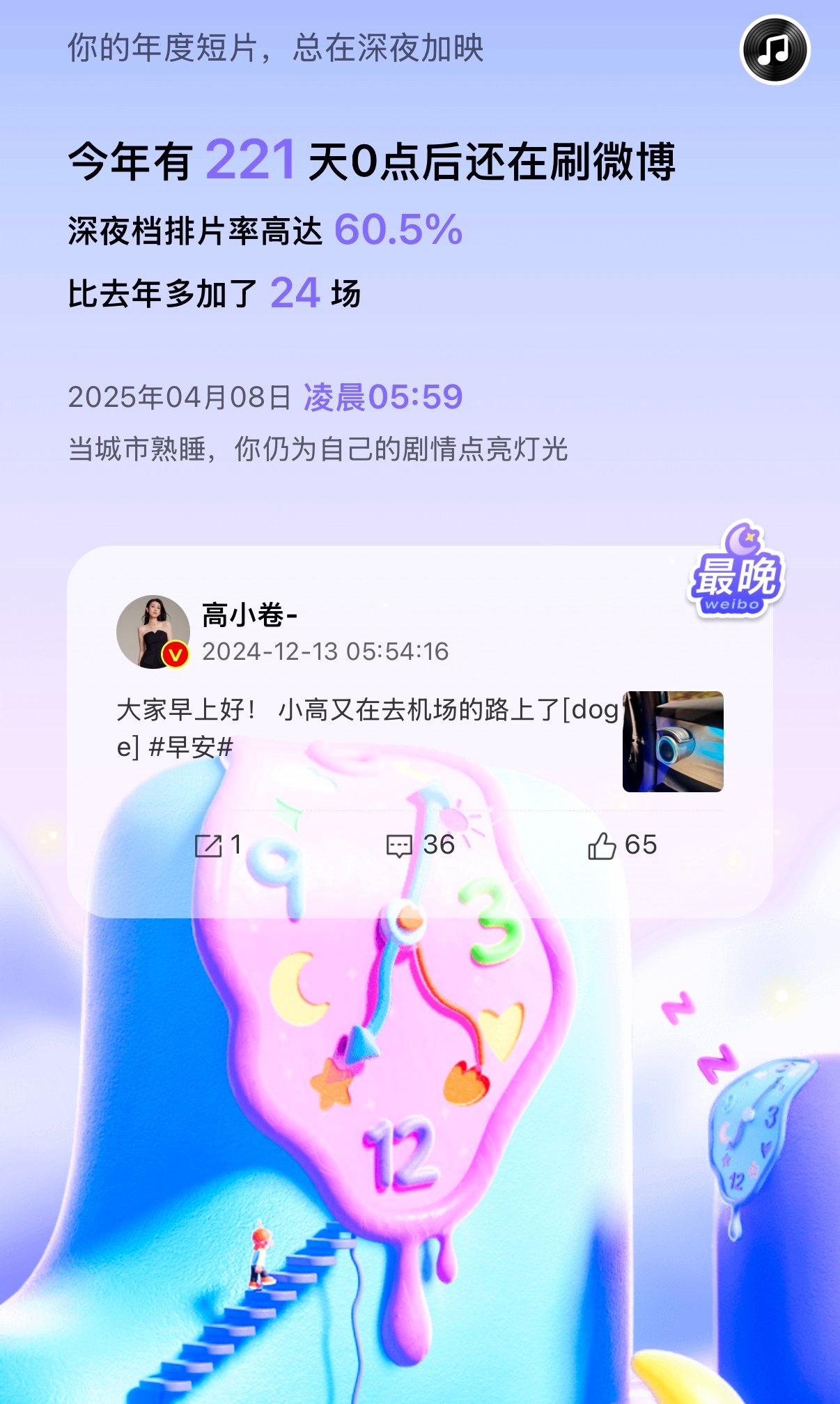 年度报告来了!🧣今年很开心打了365天全勤卡!明年继续保持也谢谢我的粉丝朋友们!陪伴了一年又一年26年争取少半夜熬夜刷微博微博年度报告微博之夜卷妹的唠嗑