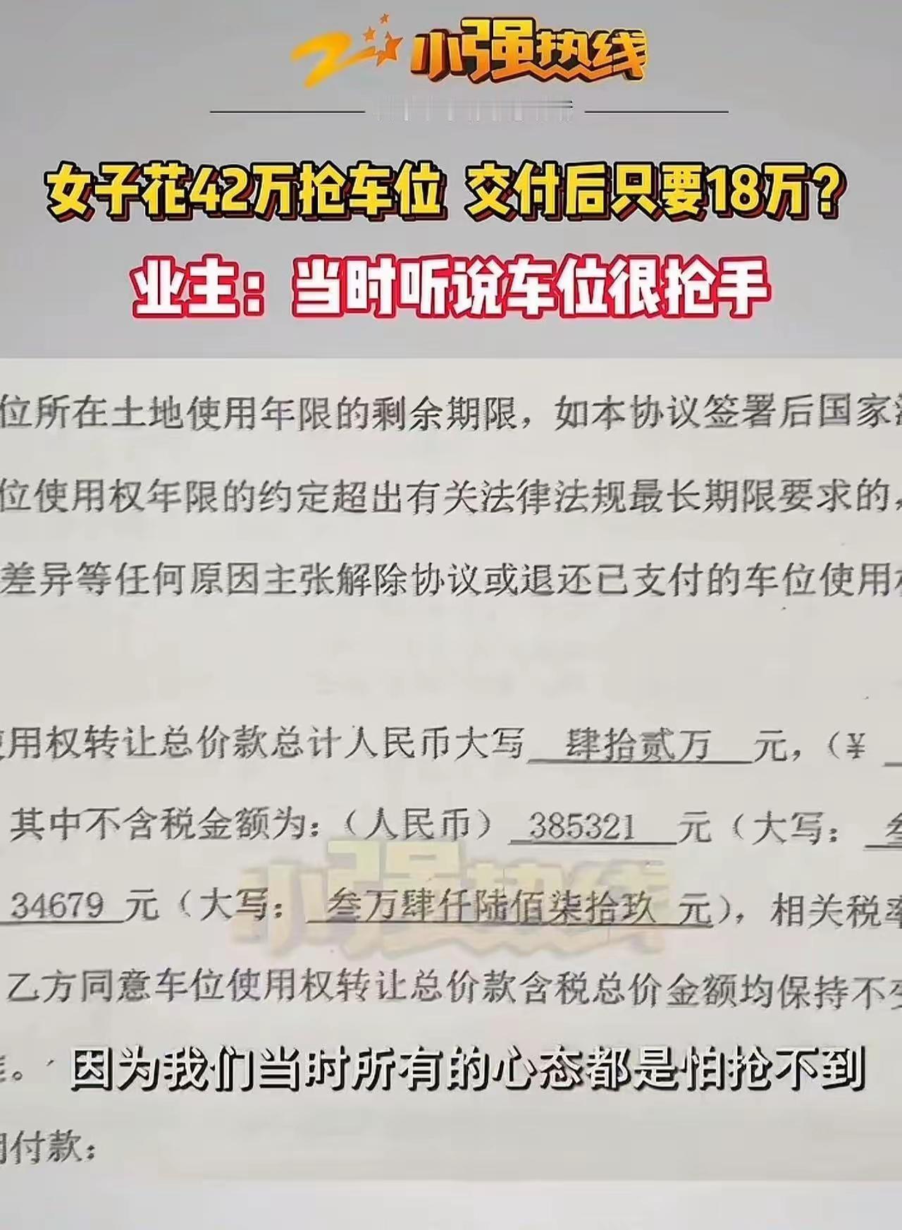 42万买的车位骤跌至18万!我被开发商忽悠得明明白白! 2022年买新房时,