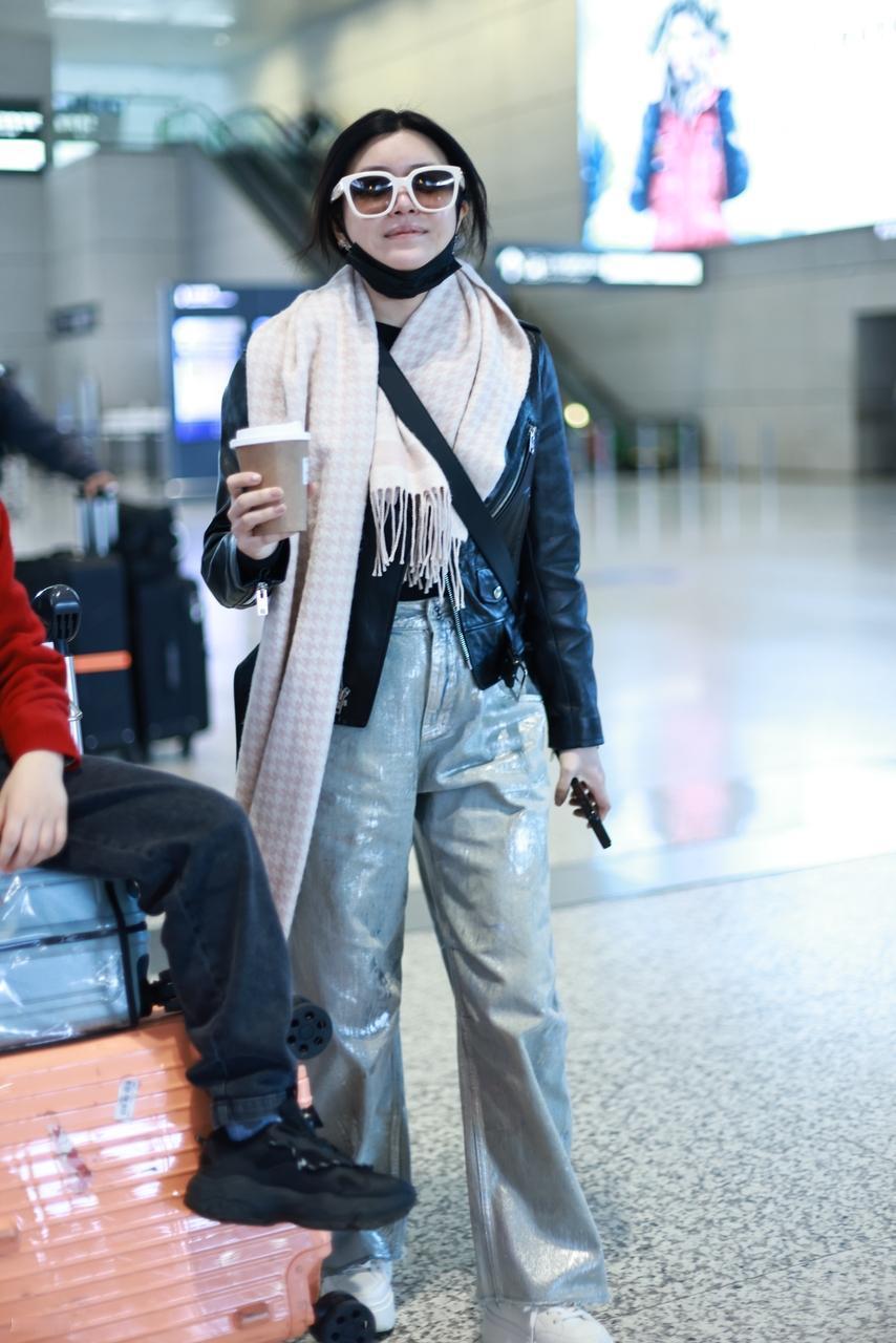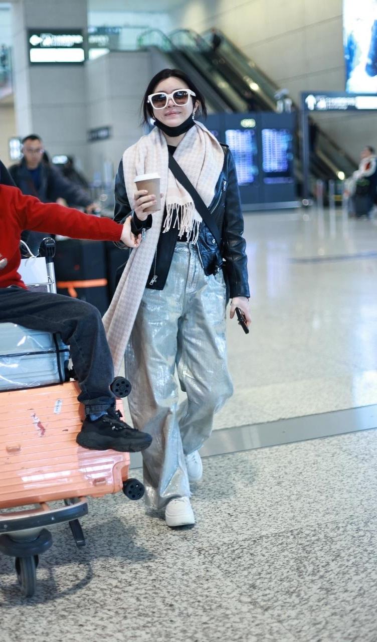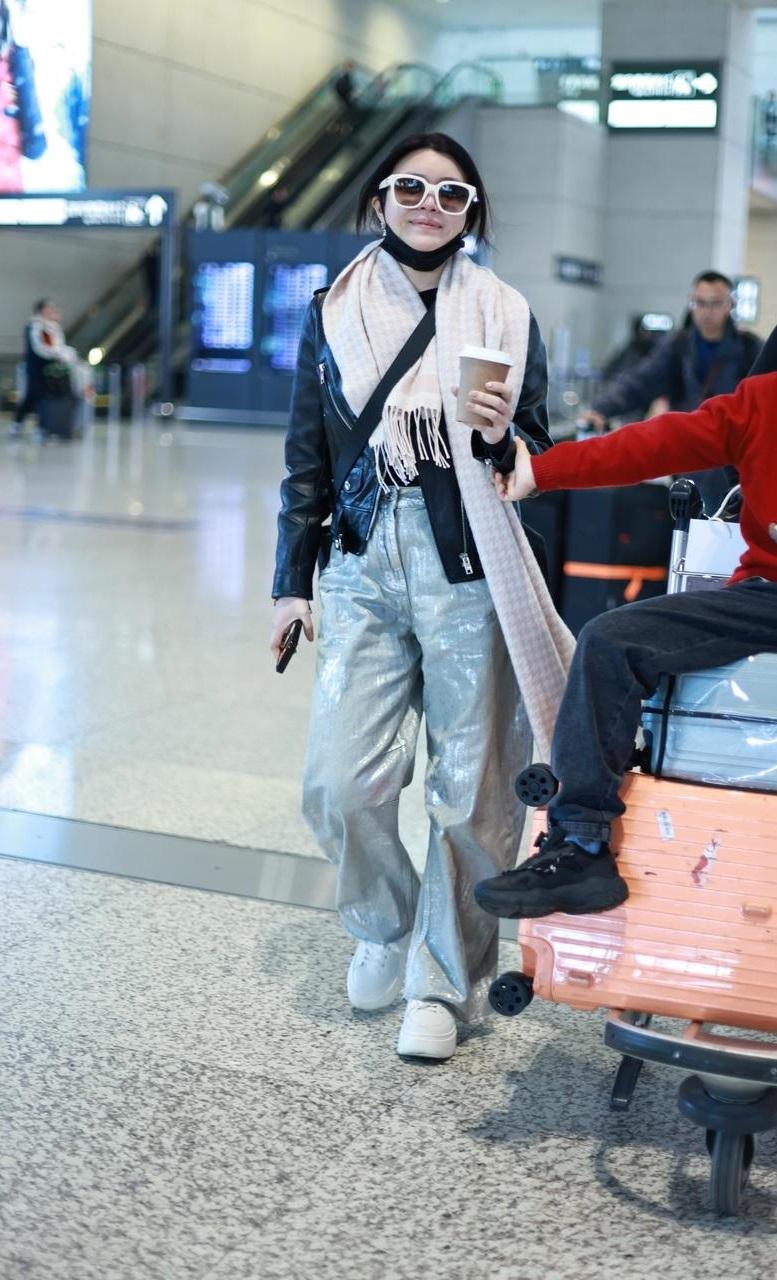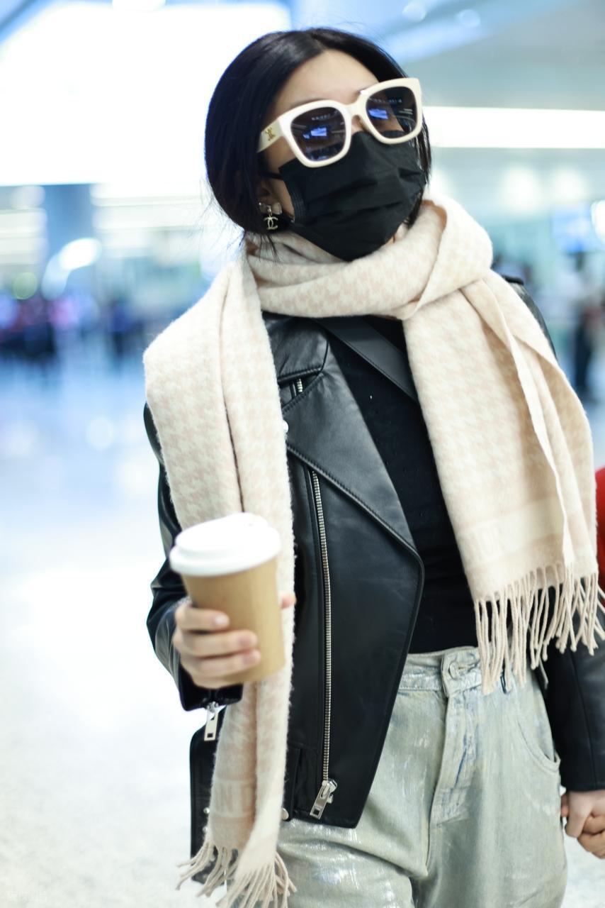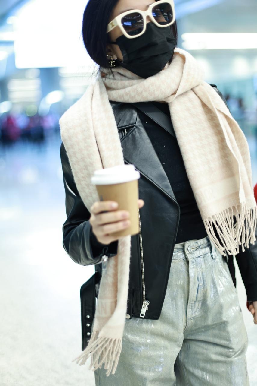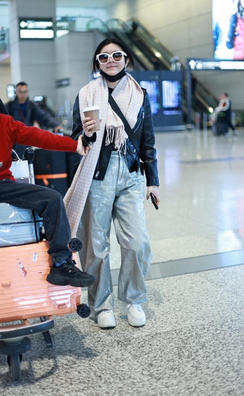 近日陈妍希现身上海机场,她这回搭配的很有潮流时尚感,看起来年轻又迷人。 她里面穿黑色背心,外面套装黑色的皮夹克,两件衣服叠穿的效果很不错。 陈妍希这次特意选了一件亮面的乳胶裤,这件裤子是牛仔印染风格,让她显得超有个性之美。 她这次特意拉高了腰线,还凸显出了完美的身材比例,气质超好,也很有大牌明星魅力。 陈妍希脚踩白色的厚底运动鞋,还特意把头发挽了起来,还戴着黑色的墨镜,整个人看上去好拉风。 她脖子上围着时尚的格纹围巾,增添了浪漫风情,真的是太靓丽了。