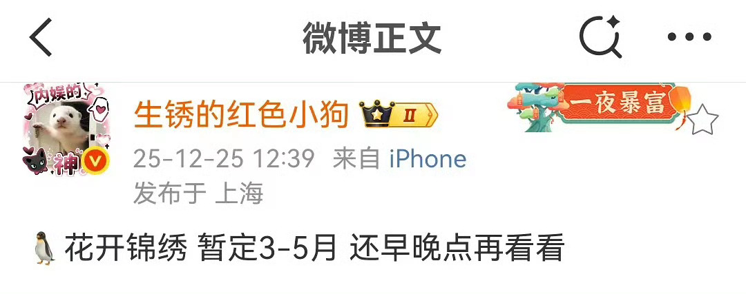 丁禹兮花开锦绣暂定3-5月,过几个月就能看到赵凌大人了!!