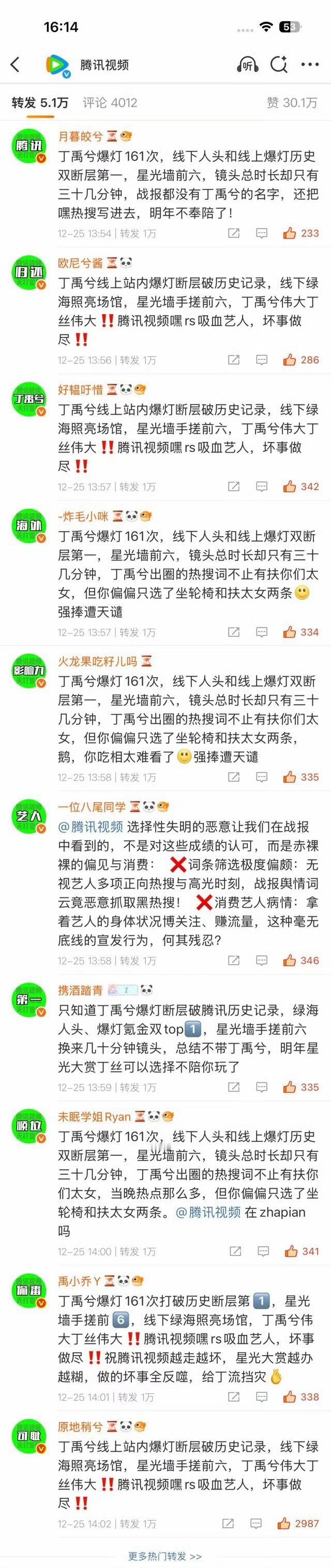 丁禹兮粉丝维权,给🐧排字了,看了一下只能说🐧不知好歹了,搞这种小动作,星光大赏一半的热度都是小丁带来的。
