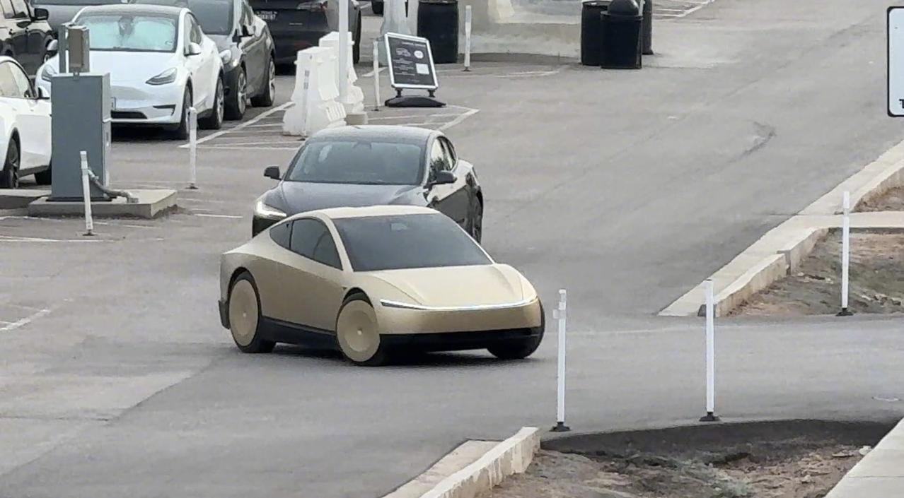特斯拉Cybercab国外路测图,没有方向盘、没有油门、刹车,双鸥翼门双座。 咱