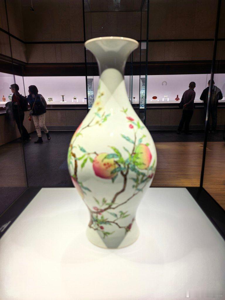 本来都下楼了,想想还是想看一眼这个雍正粉彩蝠桃纹瓶,顺便把旁边几个再看一次。天球瓶和梅瓶依然是我最喜欢的器形