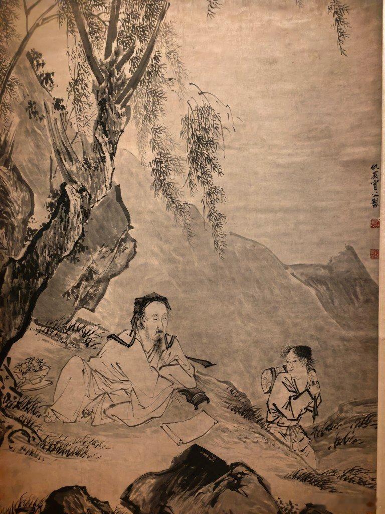 上海博物馆东馆 最近展的仇英的柳下眠琴图,也是庞家虚斋的