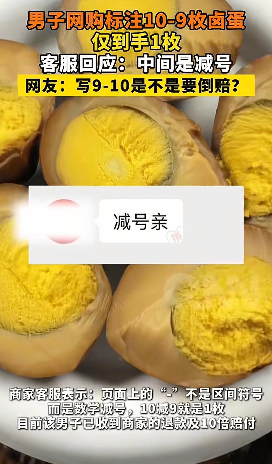 以为3块6能买10个卤蛋,结果到手只有一个,这到底是卖货,还是在给消费者出脑筋急转弯? 商家商品页写着‘10-9枚’,到货确成了‘10减9枚’。这位河南兄弟的经历,还是刷新了我的认知。3.6元下单‘10-9枚’卤蛋,收到货愣是数了好几遍——就一个!找客服理论,商家给出的理由让人都气笑了: ‘10-9’,中间那是减号!10减9等于1,发一枚是没错的。 原来购物平台里的不是商品,是一道道“阅读理解”加“算术题”。电商平台上某些商家“玩文字游戏”的套路太深,他们深谙“模糊学”的艺术,专在数字和单位上做手脚:比如“5-7寸盘子”,你发来的永远是最小的5寸;“10-20斤水果”,到货永远是压线的10斤。 为了吸引人,套路太深了,还好写的不是10-9,要不然还倒欠商家一枚。 大家网购的时候有碰到类似的模糊学吗? 商家套路 糟糕的网购经历