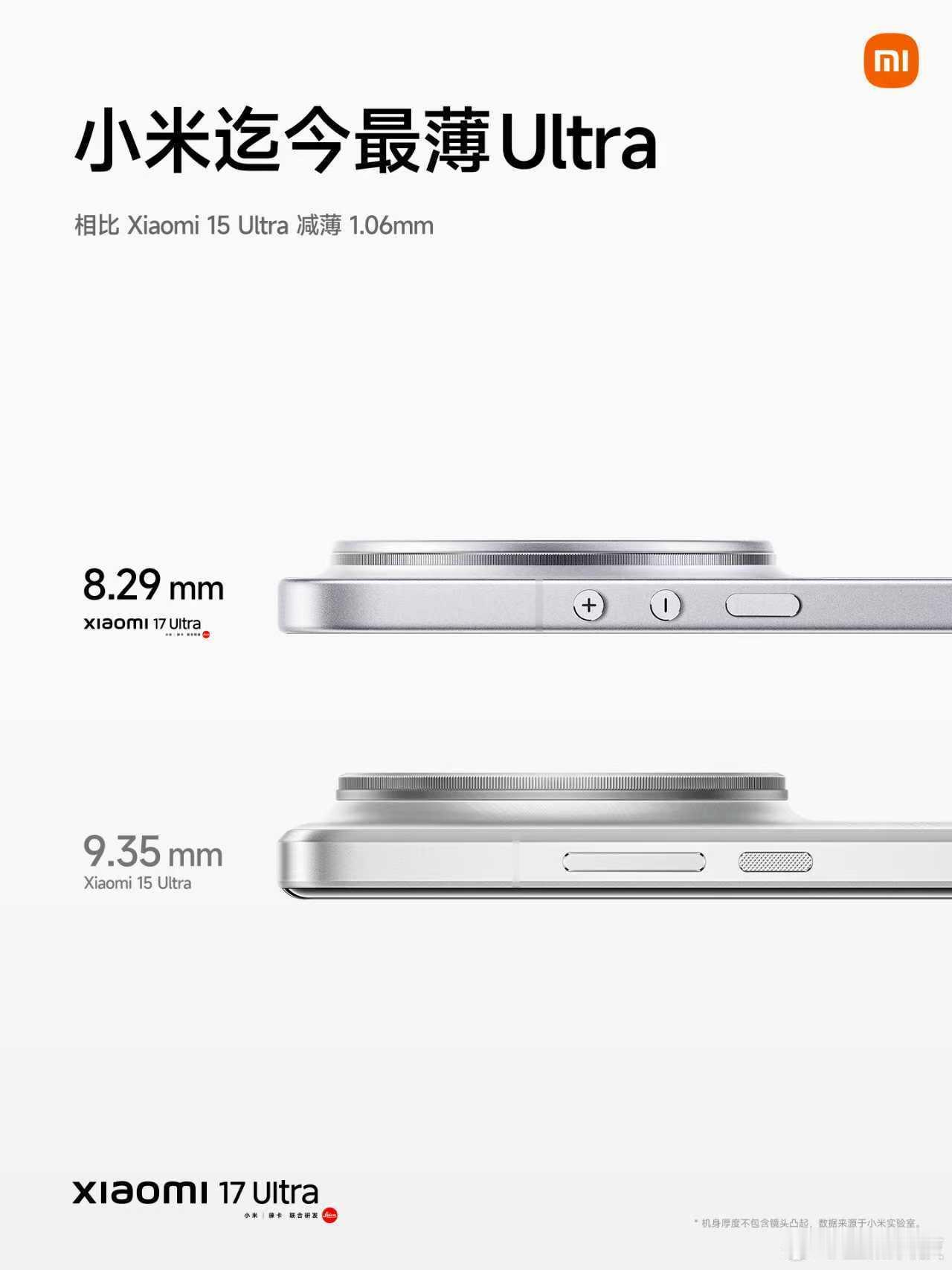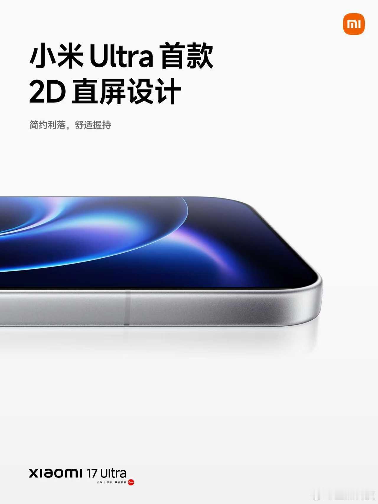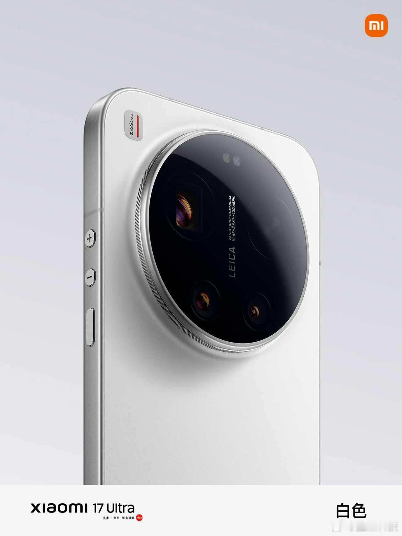 小米17Ultra外观设计:①手感设计:小米Ultra首款2D直屏,纯平立边中框;②模组设计:DECO小型化,单手握持舒适不挡手;③轻薄设计:小米迄今最薄Ultra,薄至8.29mm。④外观颜色:黑色、白色、星空绿、冷烟紫小米17Ultra今日发布