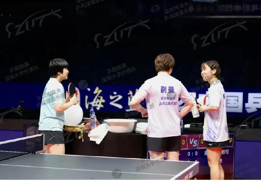 深大乒超赛场,蒯曼、覃予萱和平野美宇已经进场适应场地啦,深大幼儿园班的小队员们都到齐了,唯独没看到园长孙颖莎的身影~心里一边盼着能见到莎宝,一边又更希望她能好好休息、养足精神,健康永远是第一位的,来日方长,我们等你回来✨ 蒯曼 覃予萱 平野美宇