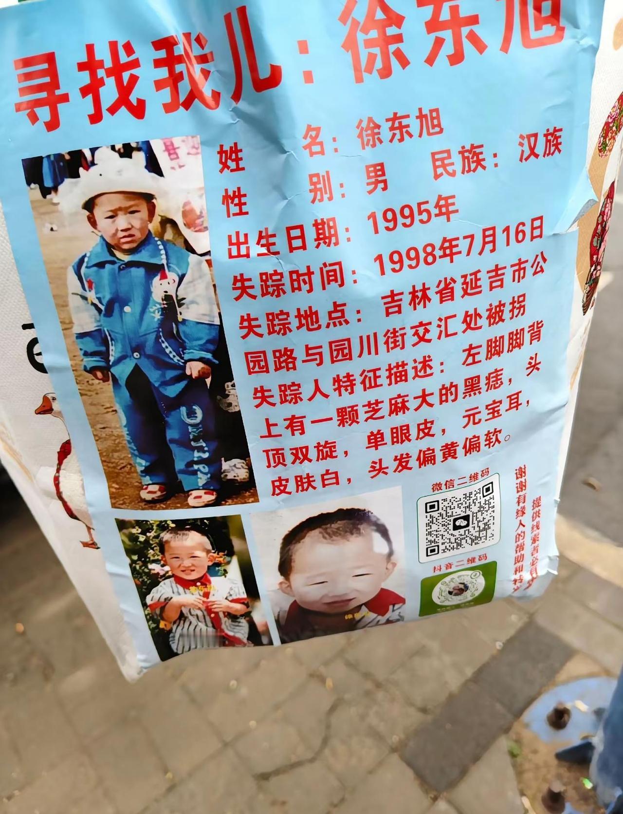 寻找1998年7月16日下午在吉林省延吉市公园路与园川街交汇处被拐走一名男童三岁,徐东旭左脚脚背上有一颗芝麻大的黑痣,头顶双旋,单眼皮,元宝耳,皮肤白,头发偏黄偏软,谢谢大家帮忙转发!祝愿孩子一生平安,健康快乐的成长。