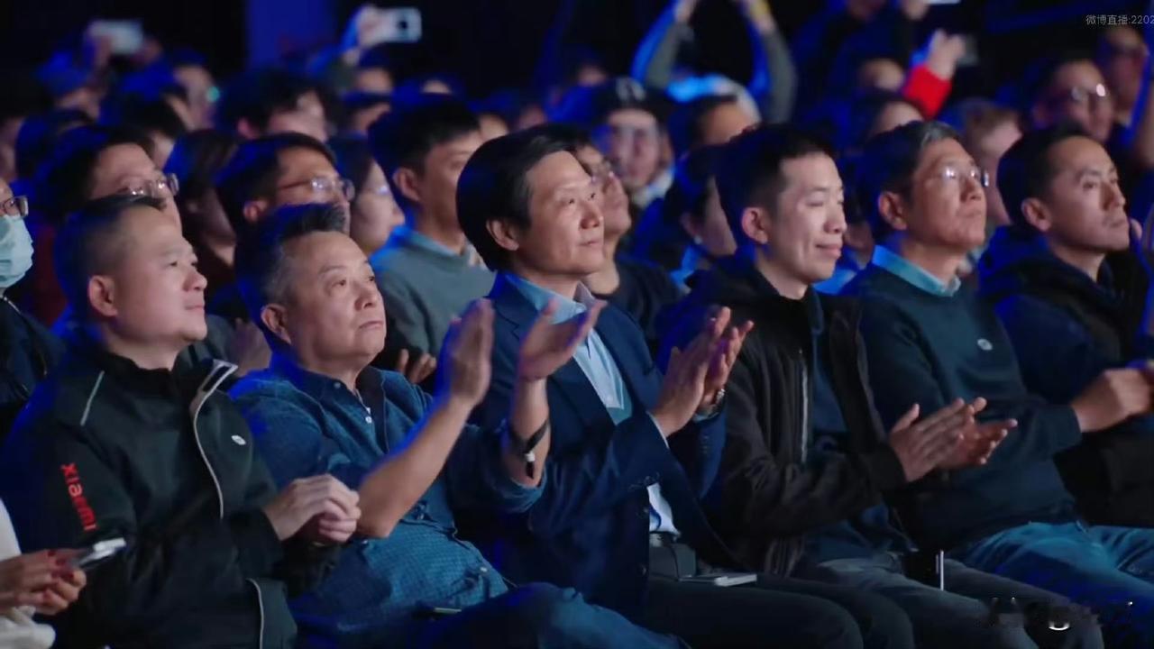 今天晚上雷军坐在下面,全程听卢伟冰讲。 虽然他没有上去,但其实在直播的时候给了他好几次镜头,由于他本人没有上去演讲,所以他基本上除了衣服之外,发型之外没有做特别的化妆,因此他看上去比台上演讲的时候,胖那么一点点。 而且看起来眼袋也有点重,如果没有记错的话,他已经很长时间没有给大家健身打卡了,可能是这段时间工作上的压力太大,或者他已经达到了自己年度健身的目标,就暂时的休息一段时间。 不过他在认真听讲的时候,和平时自己在上面讲的时候那个状态真的还是不一样,他在台上的时候,你看不到他眼睛里面有一丝丝疲惫的样子。 不过还好今天晚上卢伟冰手机板块,并没有讲很长的时间,再加上其他的产品发布也讲得比较较快,所以整个发布会的时间还是比较紧凑的。