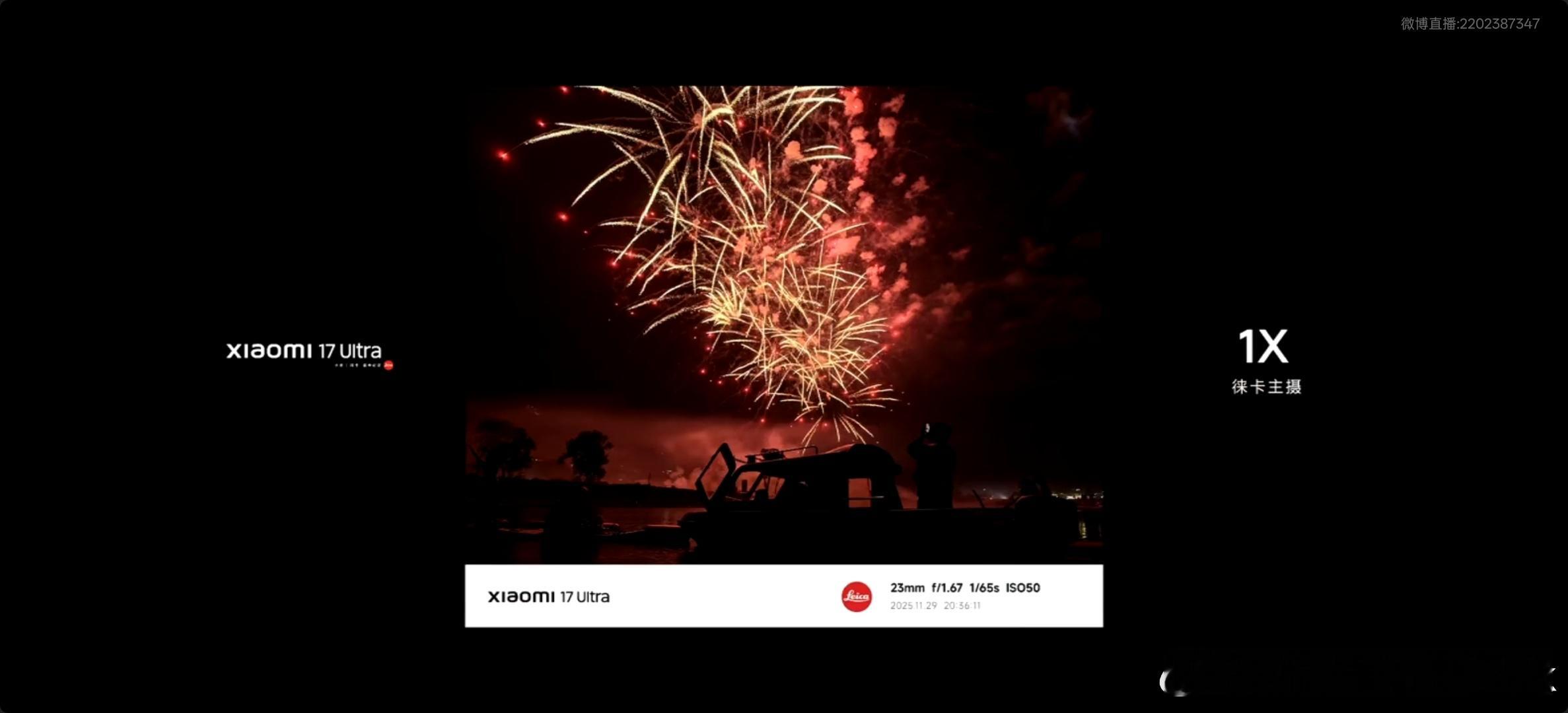 小米17Ultra烟花模式 平时过年过节用手机拍烟花,总是拍得很不出片,要么太黑太暗,要么就是各种过曝,根本没法发朋友圈。小米17Ultra做出来的这个烟花模式确实整挺好相当于一键就把要拍烟花的参数给安排好了,配合LOFIC超高动态技术,直接对准烟花按快门坐等出片就完事!春节前买上一台17Ultra,过年朋友圈得各种出大片啊!