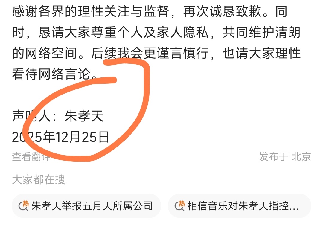 朱孝天深夜发文,态度180度大转弯!他不仅为自己情绪失控、言语不当诚恳道歉,更疑似向被攻击的五月天及其公司认错,这反转简直让人措手不及!起因是F4重组演唱会,朱孝天因合约问题未能参与,随后在粉丝群爆料,直指五月天公司:勾结黄牛炒票、转移资产逃税、演唱会假唱。这番“掀桌式”爆料瞬间引爆网络,尤其是“配合有关部门调查”的言论,让事情变得扑朔迷离。面对舆论压力,朱孝天深夜发文,除了承认自己情绪失控、言语不当,占用了公共资源并且朱孝天一连发布了好几个道歉,又是给公众,又是给大家的。看来舆论确实特别大,他也确实知道自己错了。目前,五月天方面尚未回应。你觉得朱孝天的道歉是真心悔过,还是为了平息舆论?
