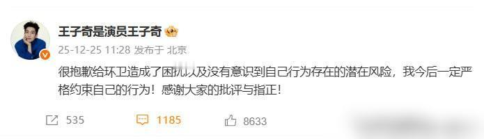 男星王子奇,公开道歉! 12月25日,演员王子奇被狗仔拍到在乘车时将未熄灭烟头直接丢出窗外。 这事道歉就完了?恐怕没那么简单。 车窗抛物本来就是陋习。丢个烟头更危险。 没熄灭的烟头带着火星。扔到干燥的草丛或者垃圾堆里,很可能引发火灾。这不是危言耸听,多少火灾就是这么来的。 就算没着火,给环卫工人添麻烦是实实在在的。马路上捡垃圾多危险啊。 有网友说这是小题大做,是公众人物被放大镜看了。 这种说法站不住脚。普通人这么做也该批评。跟是不是明星没关系。 王子奇道歉里提到“潜在风险”,说明他之前确实没意识到。这恰恰是问题所在。 很多不文明行为,当事人都是无意识的。觉得随手一扔没什么。 公众人物的影响力是双刃剑。做错了事,道歉是应该的。但更希望他们能真正带头做好。 车内吸烟本身也不健康。还影响同车的人。 更关键的是,这种行为暴露了安全意识的缺失。对自己对他人都不负责。 看看社会新闻。因为一个烟头引发的悲剧还少吗?不能总等出了事再后悔。 王子奇道歉态度还算诚恳。希望他能真的记在心里,以后言行一致。 大家监督明星,不是针对他个人。是希望借此推动整个社会文明程度的提升。 每个人都管好自己手里的烟头、垃圾。环境才能真的变好。 说到底,这是个公德心的问题。不分明星还是普通人。 遵守规则,敬畏安全。这是最基本的底线。 别让随手一扔,扔掉了素质,也扔掉了安全。 MCN双量进阶计划
