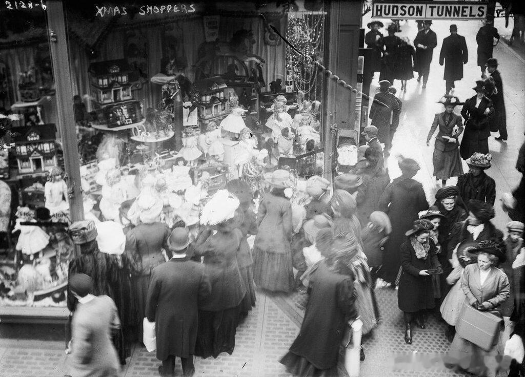 1910年圣诞节期间,美国纽约购物的人们