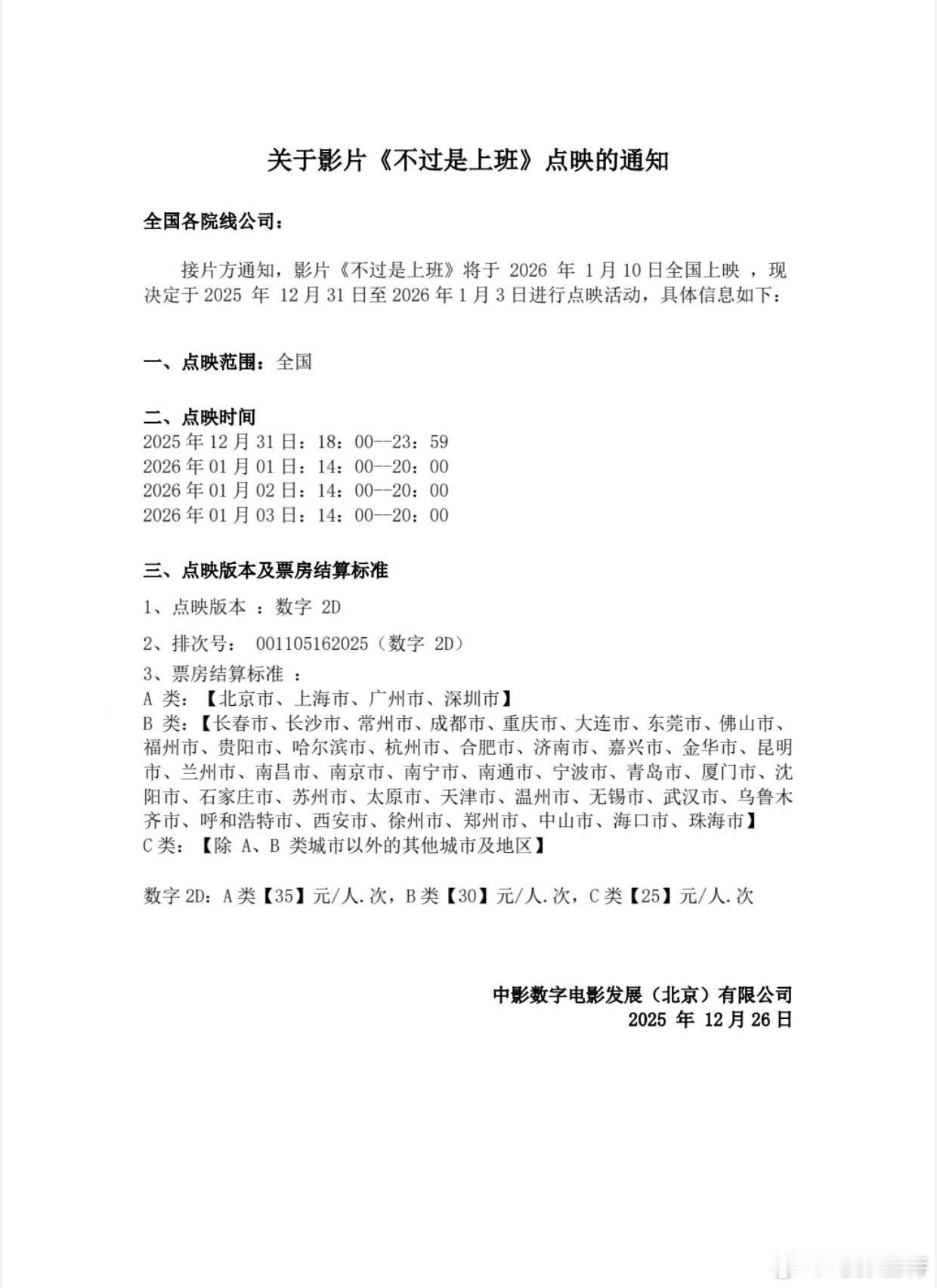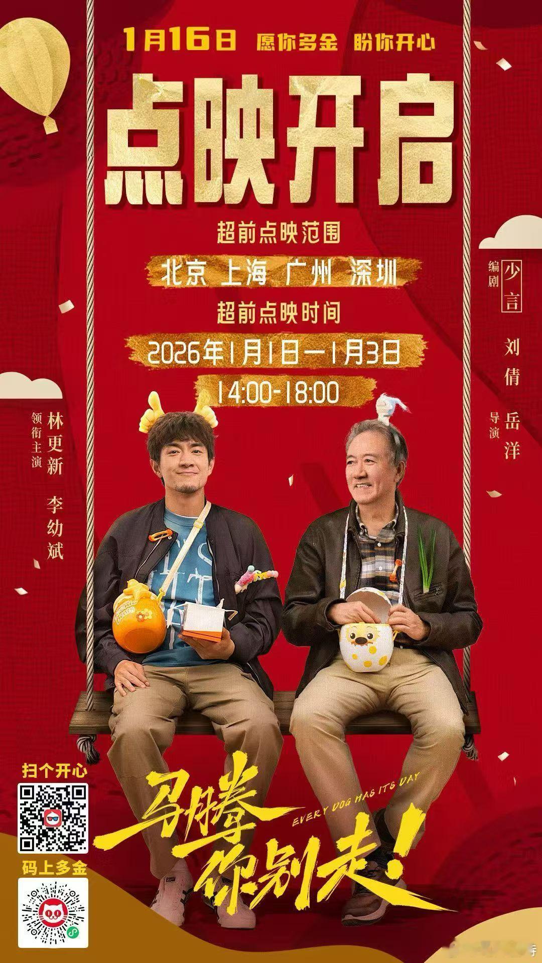 听听温特怎么说 电影《马腾你别走》将于2026年1月1到1月3日14:00-18:00在北京、上海、广州、深圳四个城市开启限时点映。光线电影《不过是上班》31号—3号全国黄金时段点映。