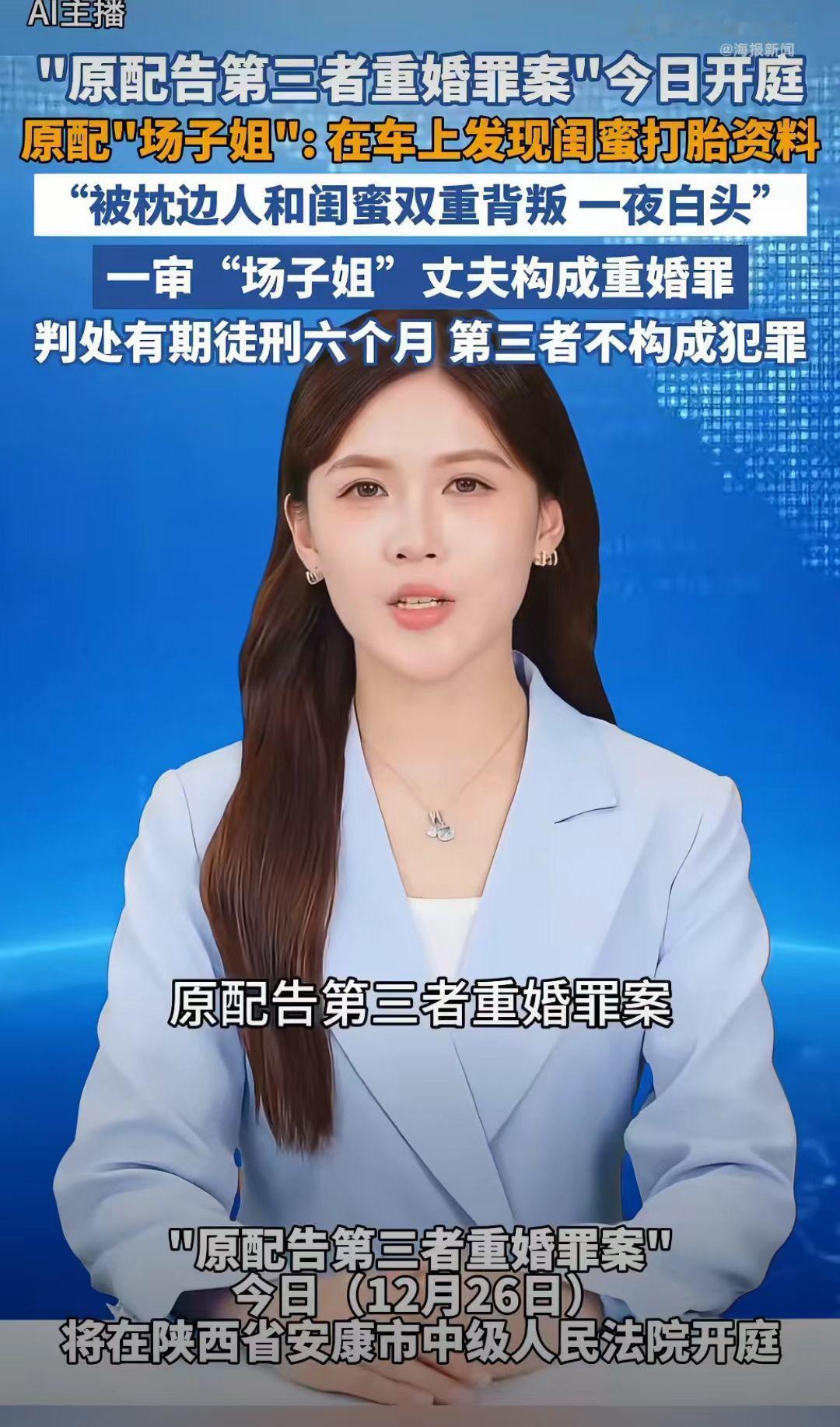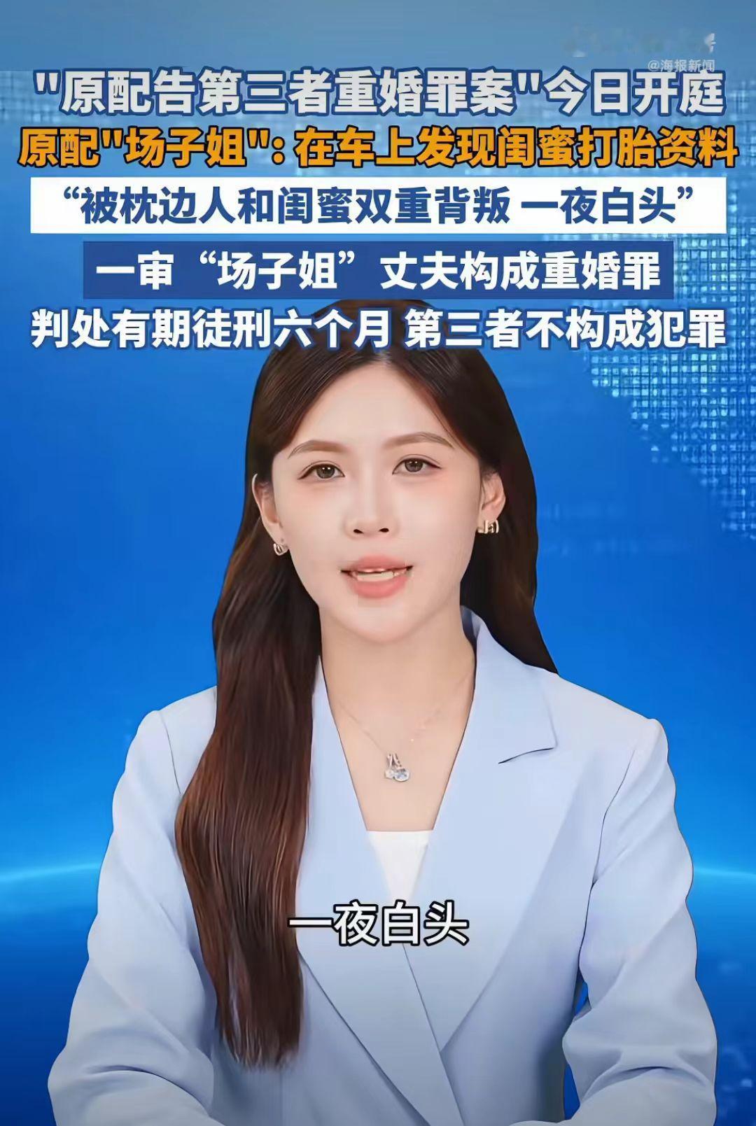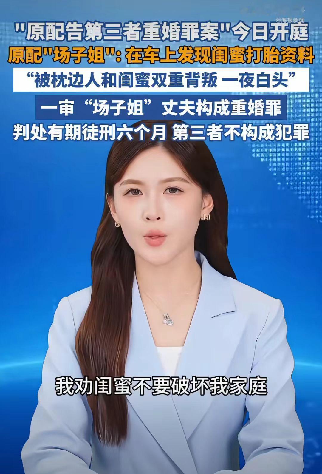 原配告第三者重婚罪开庭了, 一审“场子姐”丈夫判有期徒刑6个月,第三者不构成犯罪, 二审法院驳回了“场子姐”的上诉。 事情经过:陕西场子姐和丈夫结婚20年,共同经营多家企业,2021年,场子姐在丈夫车子里发现好闺蜜潘某的打胎记录,明显的丈夫和闺蜜双重背叛啊! 场子姐在丈夫车子里发现好闺蜜潘某的打胎记录时,瞬间感觉天都塌了。 场子姐为了自己家庭孩子,就决定找闺蜜谈谈,说你能不能不要破坏我的家庭,让孩子有个完整的家。 好闺蜜直接把她拉黑了,不理她了。 场子姐把丈夫出轨的事告诉公公婆婆了,公公婆婆也劝儿子收收心,不要把家给毁了。 可是场子姐的丈夫是吃了秤砣死了心,不听劝,还和潘某夫妻相称,还让儿子叫潘某“妈妈”。 真是杀人诛心啊!这是一个丈夫能干的事吗?竟然让孩子叫潘某“妈妈”。 场子姐遭丈夫闺蜜出轨,儿子的那一声潘某:“妈妈”,身心受创,一夜白头。 2023年,场子姐决定向法院起诉丈夫和小三潘某。 2023年,一审法院认定场子姐的丈夫构成重婚罪,判处了有期徒刑六年,第三者潘某不构成犯罪。 在法庭上,第三者说自己和场子姐的丈夫只是谈恋爱,没有叫他丈夫。 这是吃透法律了,没有证据证明自己和他是夫妻,就不犯法了吗? 场子姐不服,再次向法院提出申诉。 2025年,二审判决: 法院维持原判,场子姐找了5位证人(包括潘某公司员工)证明其公开以配偶自居,却未能改变判决结果。 难道对破坏婚姻的第三没有惩罚了吗? 你能接受这个判决结果吗? 婚姻家庭小三 小三 婚姻小三插足