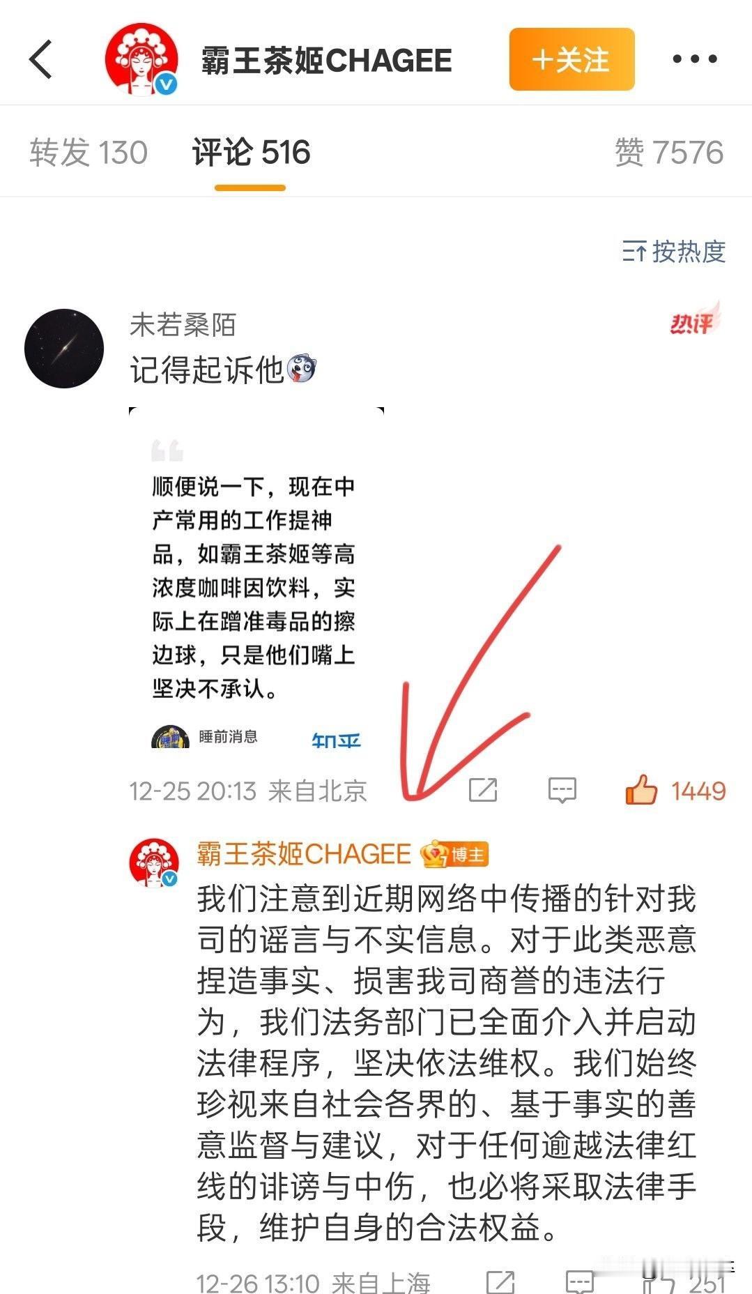 霸王茶姬发起法律反击。 网友反映饮用霸王茶姬后出现失眠、心悸等症状,质疑其饮品咖啡因含量过高。霸王茶姬客服回应并强调咖啡因源自天然茶叶,非人工添加。 事件的起因是账号[睡前消息]在社交平台知乎上称霸王茶姬“蹭准毒品擦边球”,将高浓度咖啡因饮料类比毒品称之为“准毒品”,引发广泛传播。霸王茶姬12月26日公开声明,认定该言论属恶意捏造事实、损害商誉,法务部门已启动法律程序维权。目前该账号疑似改名"马前卒official"规避责任🤭。 这个问题纯咖啡因是被列管的精神类药物,确实属于毒品范畴。问题就在于普通咖啡并未被列管,所以就不是毒品,法律上不存在所谓“准毒品”这种概念。按照他的想法那么卖咖啡的卖可乐都是“准毒贩”?这就纯粹无稽之谈。 另据平台AI信息显示,账号睡前消息的运营者真实身份是马前卒(化名马督工),他作为该工作室的创始人和核心人物,在时政评论领域有显著影响力。马前卒是睡前消息的主要运营者,他曾在观察者网担任新闻总编辑,后创立睡前消息工作室,负责内容策划和输出。他的真实姓名未被公开披露,但以"马督工"的笔名活跃于多个平台,包括微信公众号、B站和微博,内容聚焦社会议题和经济分析。