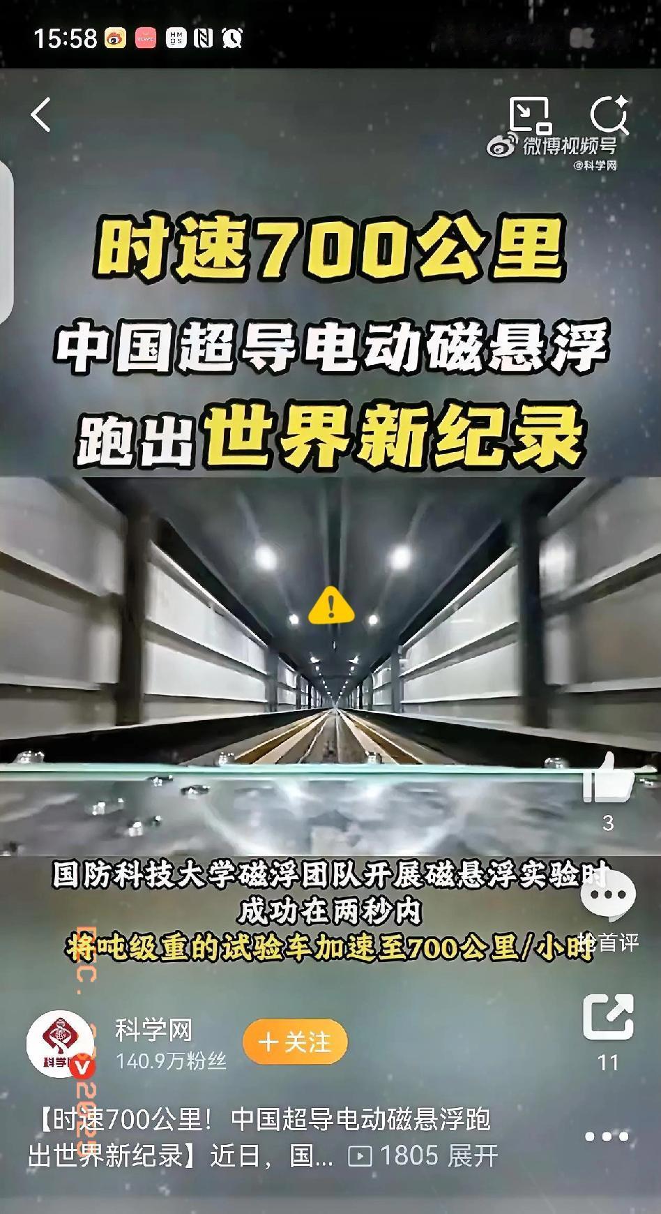 中国的磁悬浮干到时速700公里了,马斯克的胶囊火车还是他的梦想吧? 这些年不知什么人扯什么科学比技术更高级、更重要。科学原理都一样,大家都知道,得做出来,才有用,而且不仅做出来,还得低成本,还得能运营,这个比什么科学原理更难,更有价值。 别总迷信所谓的“理论突破”,全球科学界这半个世纪基本都是在现有框架里修修补补,真正颠覆格局的成果少之又少。反观我们,从追赶到领跑,靠的从来不是坐而论道,而是实打实的工程落地能力。700公里时速磁悬浮不是纸上谈兵,是能落地、能运营的硬核成果,这才是科技转化的终极意义。 我们这代人亲眼见证国家一步步往上走,这种厚积薄发的底气,不是空想能比的。未来的科技竞争,拼的从来不是谁的脑洞大,而是谁能把好点子变成老百姓用得上的真家伙。你觉得未来科技竞争的核心,是理论创新还是落地能力?