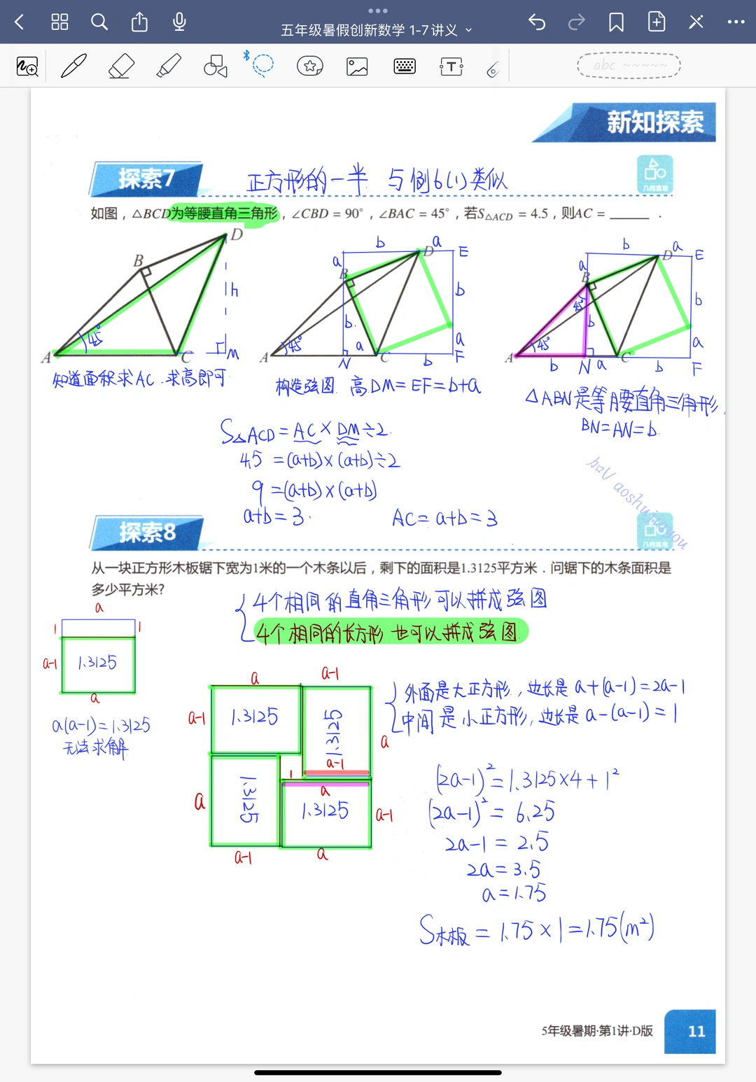 等高模型 五年级暑假奥数课堂笔记