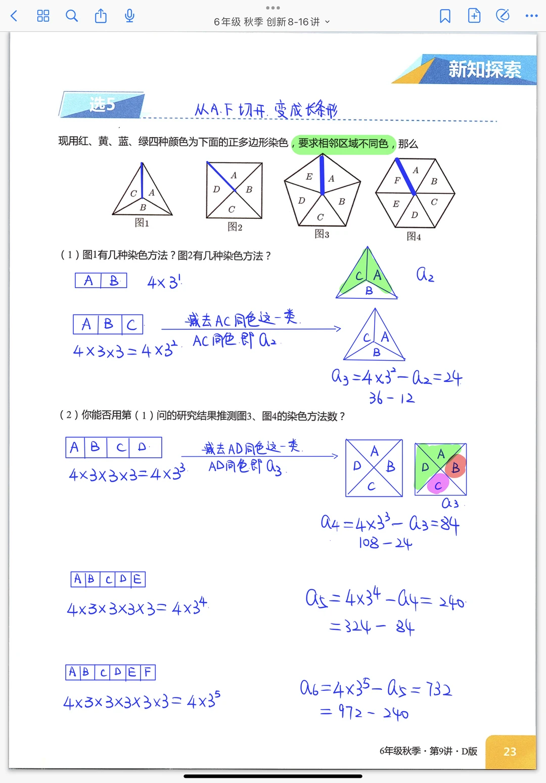 学而思创新班 数学笔记 数学思维 小升初数学 小学奥数 递推法 归纳整理 归纳总结 暑假奥数练习 暑假奥数