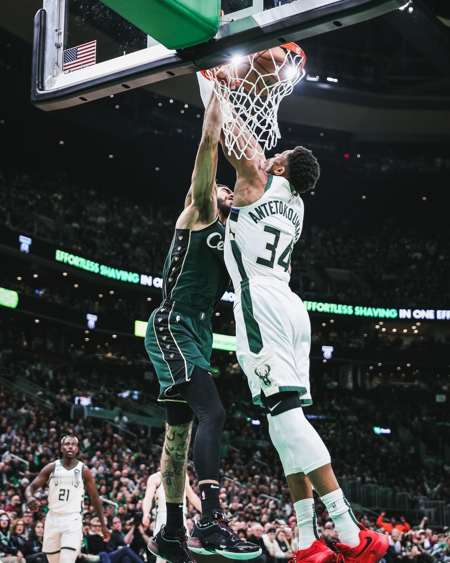 虽然最后引发了冲突,但字母哥垃圾时间这记暴扣真的很有观赏性!image via