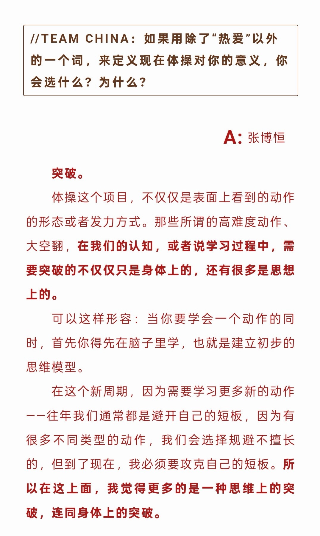 体操对张博恒来说是刻进生命的热爱,是挑战极限的突破,在体操的道路上始终保持初心,用一次又一次比赛展现出最纯粹的体育精神。