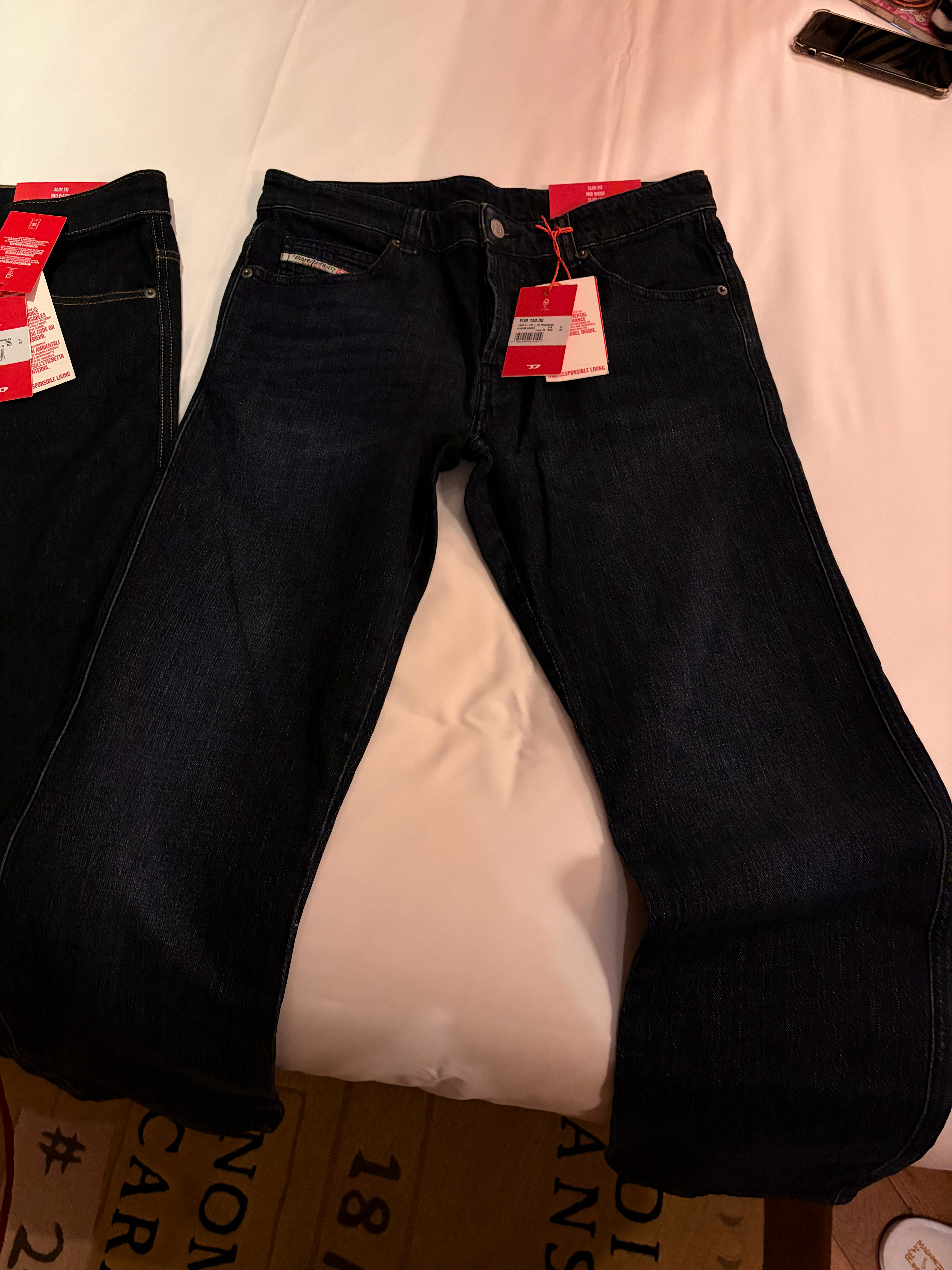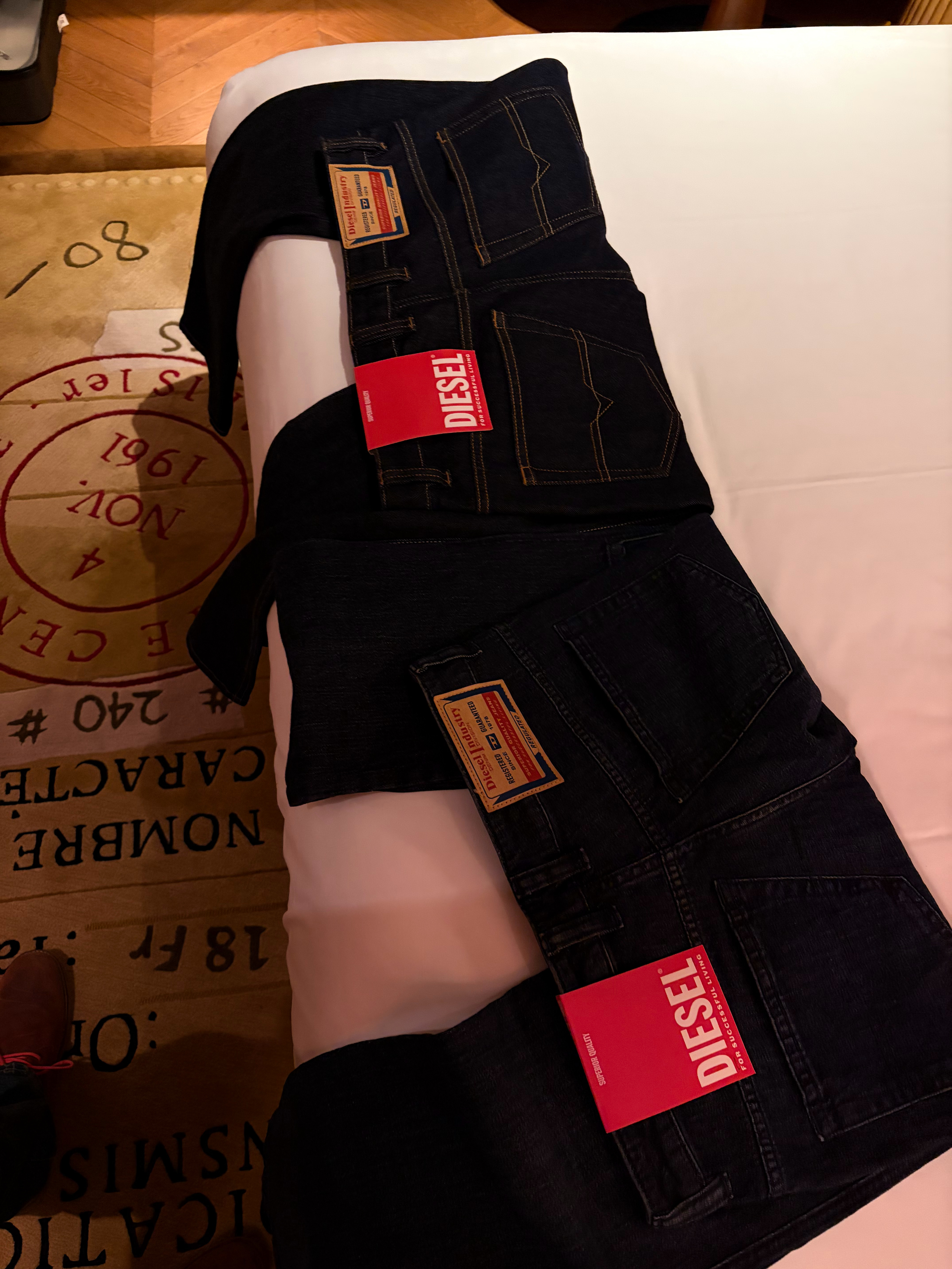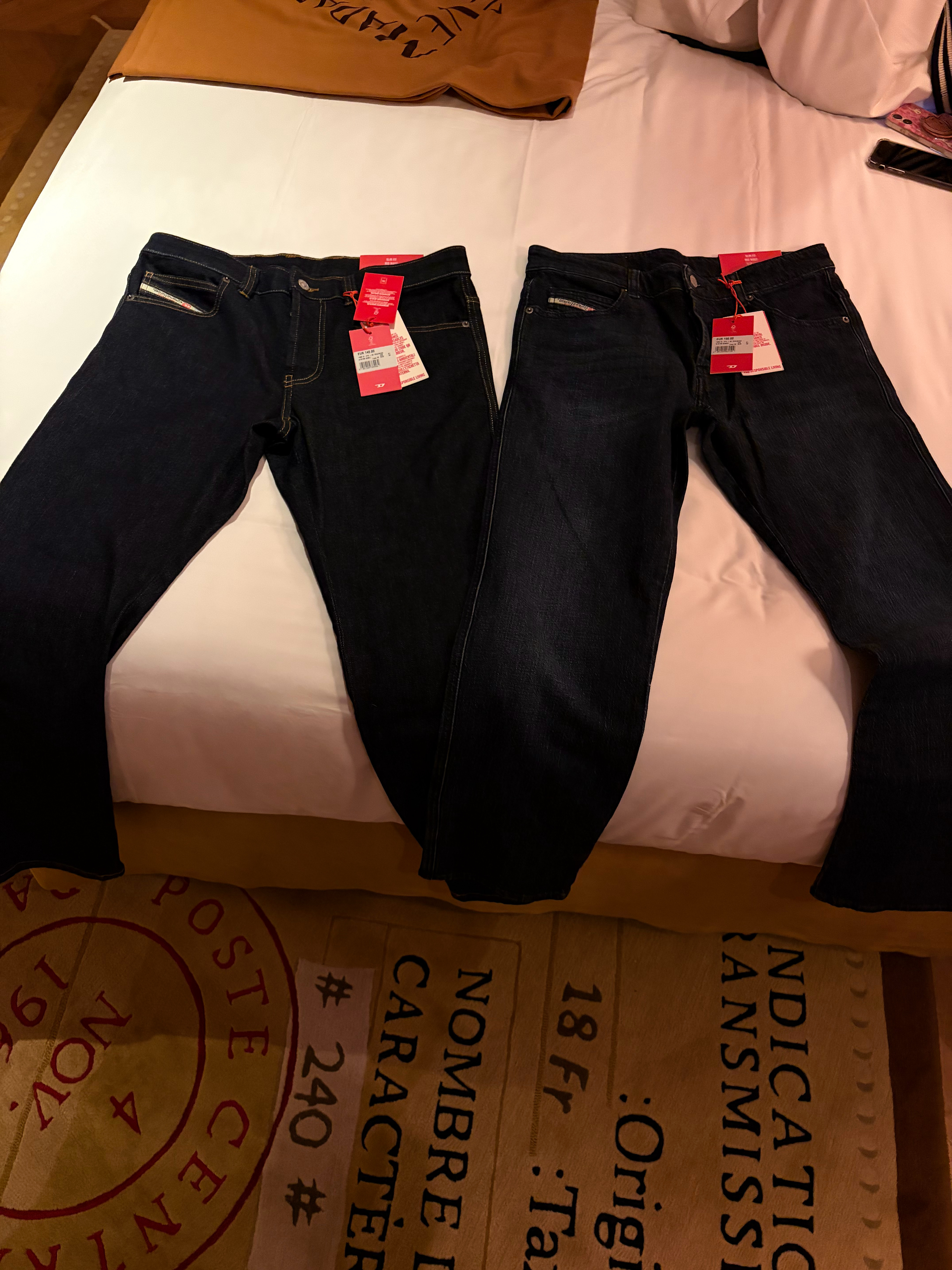 买了两条几乎一样的牛仔裤(同系列、同剪裁)。回酒店发现,一条 140 欧,一条 150 欧。感觉是水洗工序多收了 10 欧元?