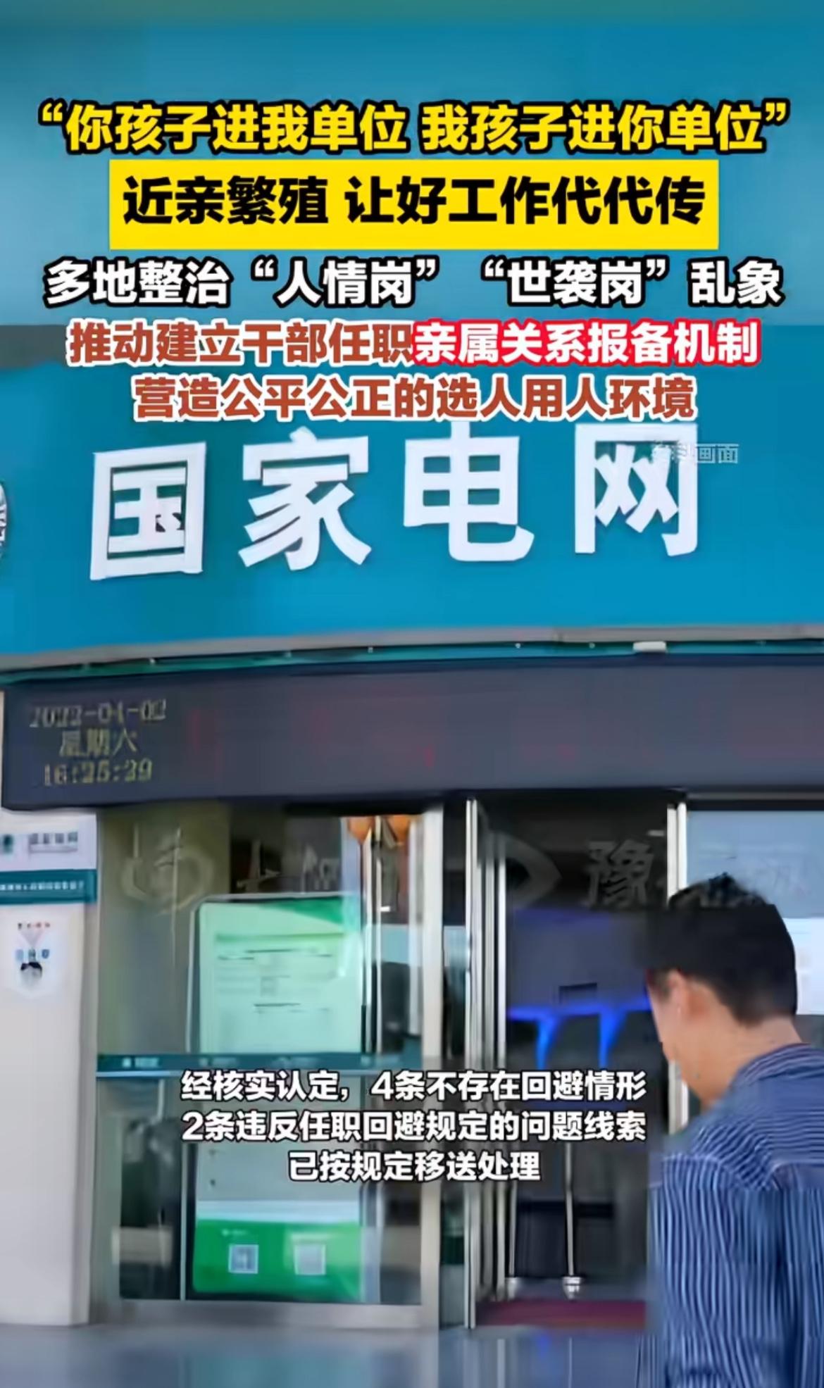 国家电网整顿“人情岗”这事儿,简直太赞了!以前在一些单位,“人情岗”现象可不少,有关系的人轻松入职,有能力没背景的却被拒之门外,这对社会公平是极大的伤害。 国家电网这次出手整顿,就是要打破这种不良风气。想象一下,那些靠着真才实学的人,不用再担忧被“关系户”挤掉机会,能凭借自己的本事进入电网工作。这不仅能让电网吸纳到更优秀的人才,也为其他企业树立了榜样。打造公平公正的选人用人环境,才能让大家更有干劲,国家电网这波整顿,值得一个大大的赞!