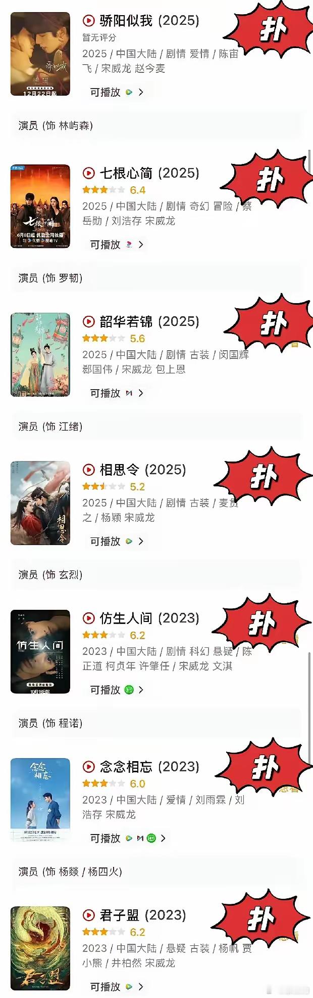 宋威龙真的惨,新剧《骄阳似我》口碑彻底扑街,一算下来他演的剧居然已经七连扑了。明明手里的资源好到让人眼红,一部接一部的好本子找上门,可偏偏就是扛不起剧,播一部糊一部,连点水花溅不起来。内娱早就有个不成文的规矩,三部剧没爆,基本就能判定没抗剧能力,后续资源只会越来越差。可宋威龙倒好,直接干到七连扑,硬是把一手好牌打得稀烂,实在让人看不懂。是演技撑不起角色,还是选剧眼光不行?都说资源咖不愁戏拍,可照这个扑街速度,再好的资源也经不住这么霍霍啊!宋威龙赵今麦杀死了现偶比赛