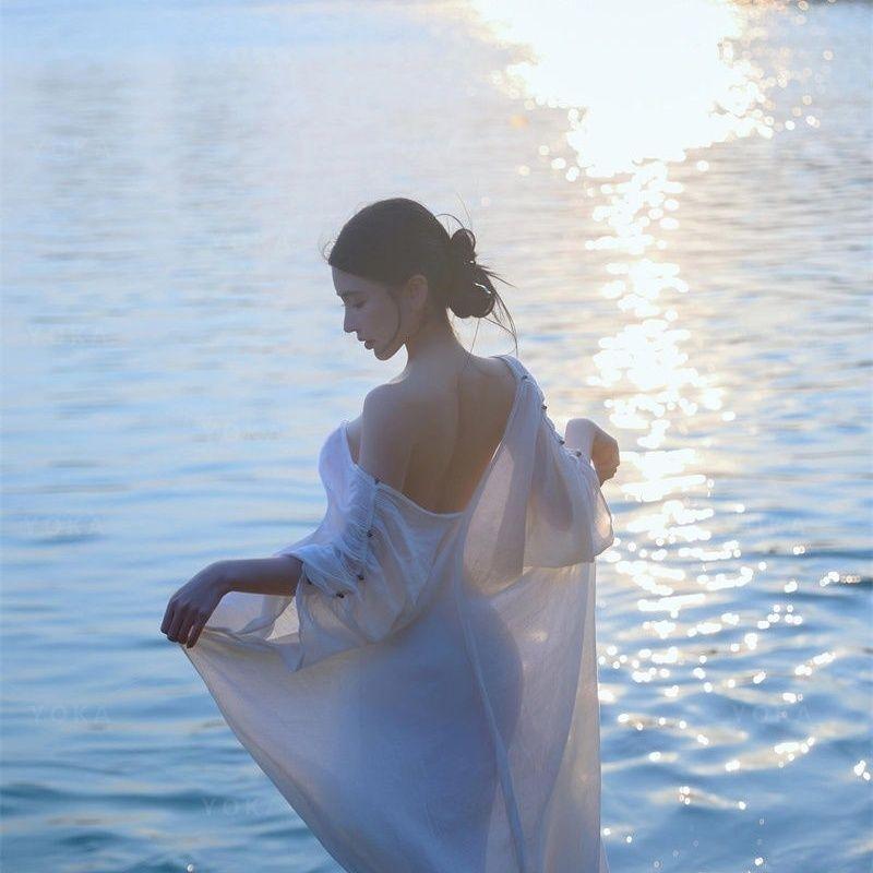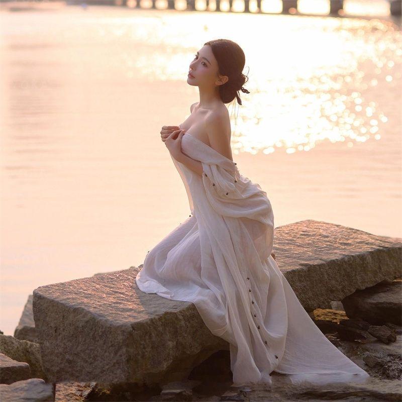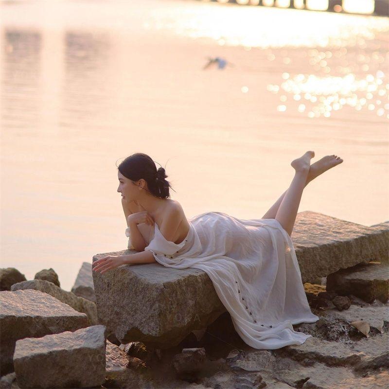 水光潋滟映夕阳,轻纱西子弄秋波。美女美景诗词分享
