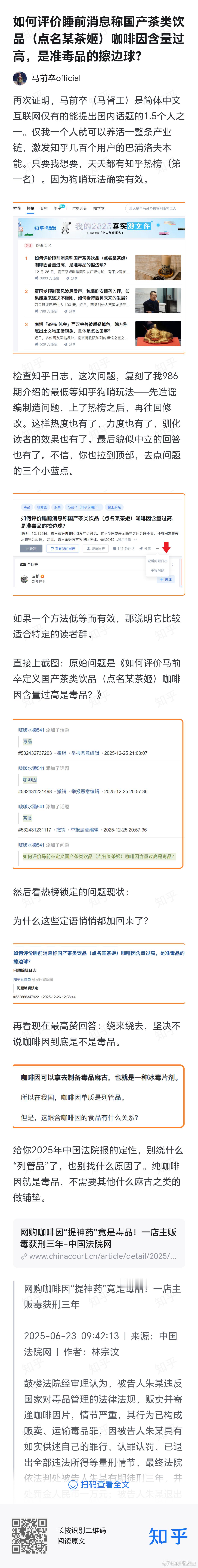 霸王茶姬大跌 霸王茶姬真的无妄之灾,谁在乱带节奏说成是,茶和咖啡里面有天然的咖啡因,这是人们选择喝它的原因,这个咖啡因又不是认为添加的,有些人为了流量给说成是“准毒品擦边球”,建议霸王茶姬起诉这些恶性强烈的,恐怕他们倾家荡产都赔不起。