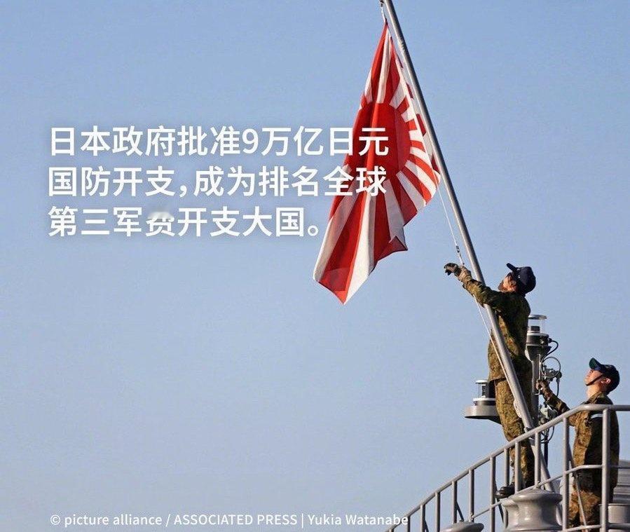 日本成为军费第三大国。 日本政府批准了下一财年的创纪录的财政预算,总额达122.3万亿日元,约合7820亿美元,其中超过9万亿日元(575.56 亿美元)用于年度国防开支。 这不仅创下日本战后历史新高,也使其成为美国和中国之后全球军费开支第三大国。 烽火问鼎计划