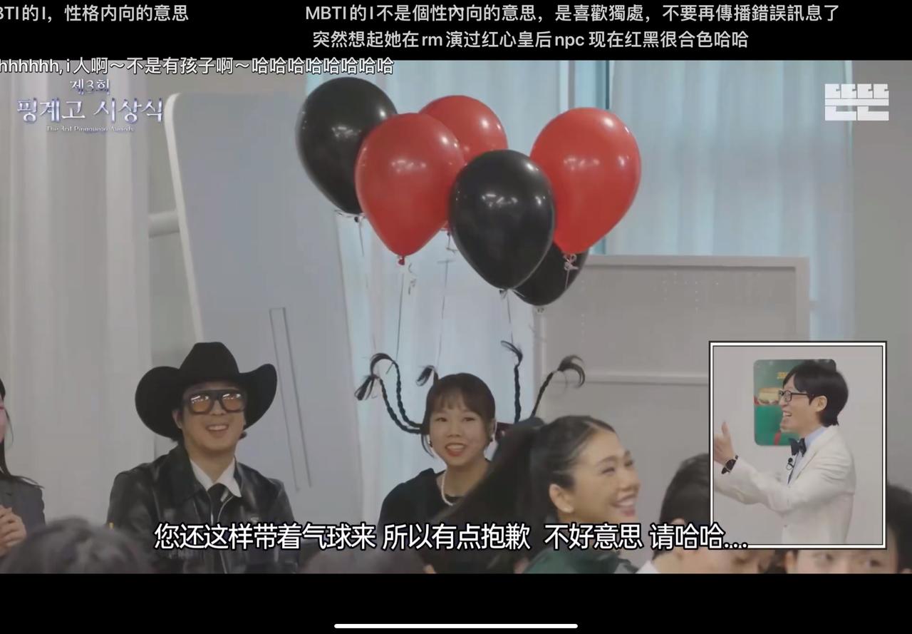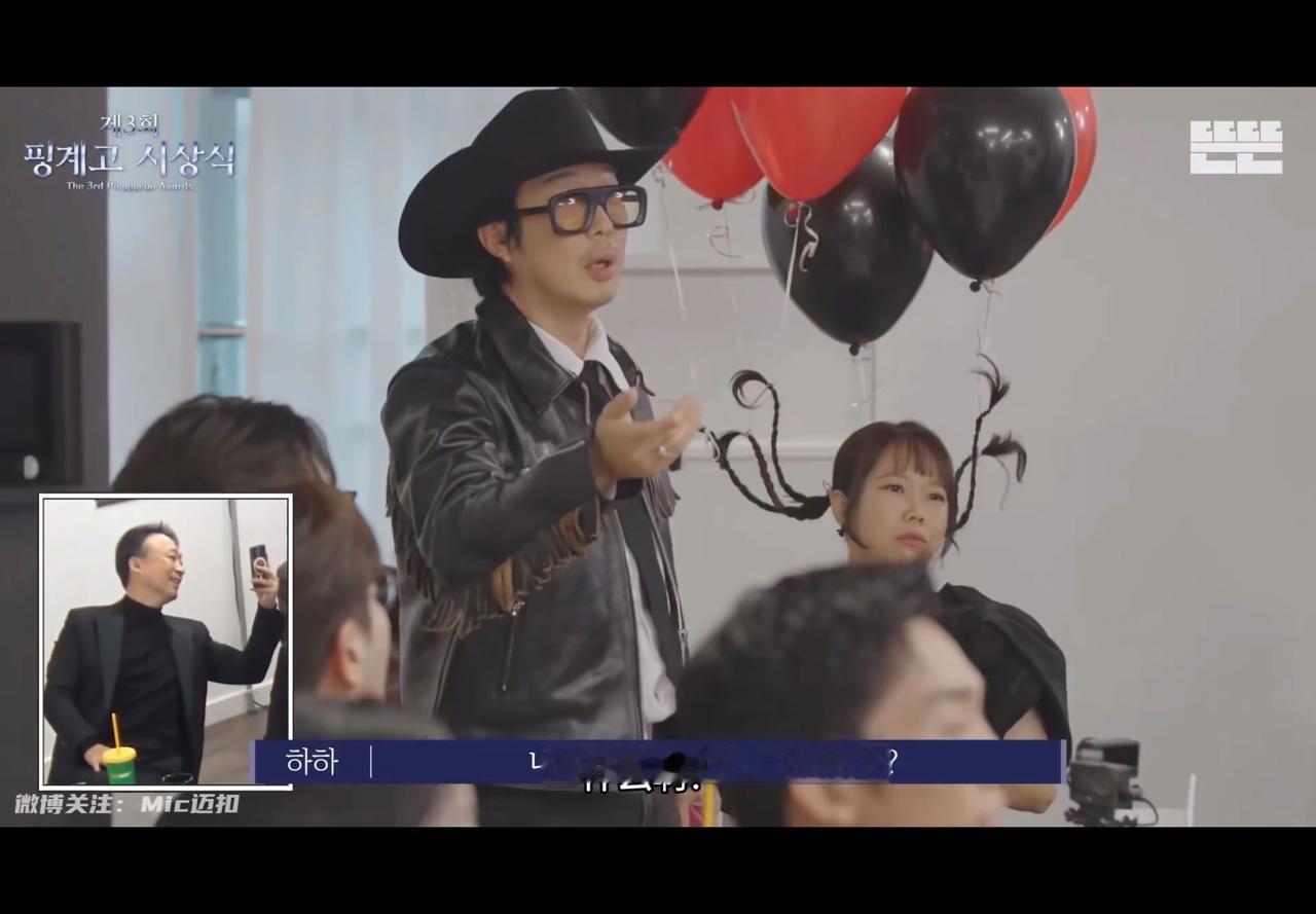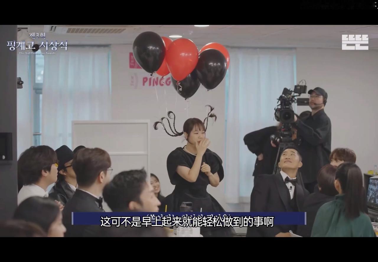 在另外一档韩国综艺节目刘在石主持的,借口go,哈哈的造型还不够惊艳全场,里面有一个女的头发绑在气球上(现场还有好多人拍照)丹尼斯说您还这样带着气球来,所以有点抱歉。刘在石说不是啊,但今天还弄了气球来参加这个典礼,那个绑着气球的女孩子说这可不是早上起来就能轻松做到的事情,嗯,本来看到宋承宪来到这个颁奖典礼,我以为是走红毯,所以我在想要不要把它剪掉,然后想了想,我也花了那么多功夫弄成这个样子,所以还是算了。这姐妹真的是“力压群芳”