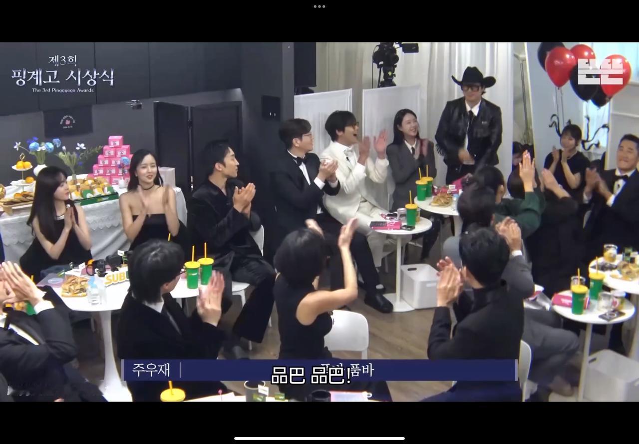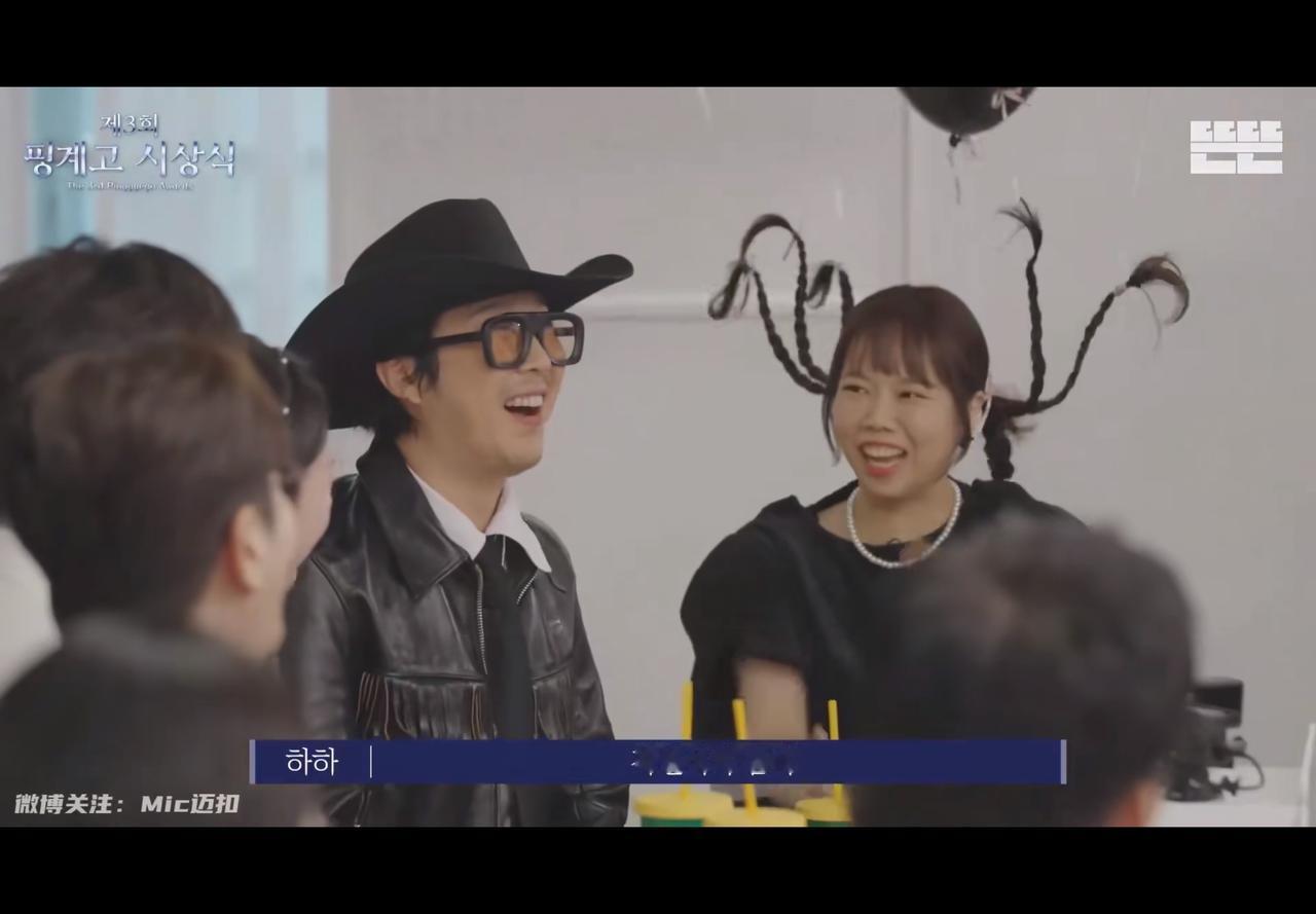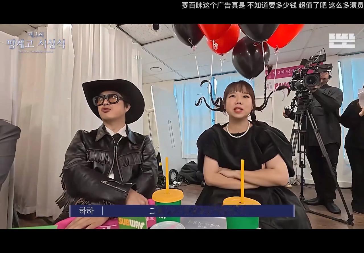 在另外一档韩国综艺节目刘在石主持的,借口go,哈哈的造型还不够惊艳全场,里面有一个女的头发绑在气球上(现场还有好多人拍照)丹尼斯说您还这样带着气球来,所以有点抱歉。刘在石说不是啊,但今天还弄了气球来参加这个典礼,那个绑着气球的女孩子说这可不是早上起来就能轻松做到的事情,嗯,本来看到宋承宪来到这个颁奖典礼,我以为是走红毯,所以我在想要不要把它剪掉,然后想了想,我也花了那么多功夫弄成这个样子,所以还是算了。这姐妹真的是“力压群芳”