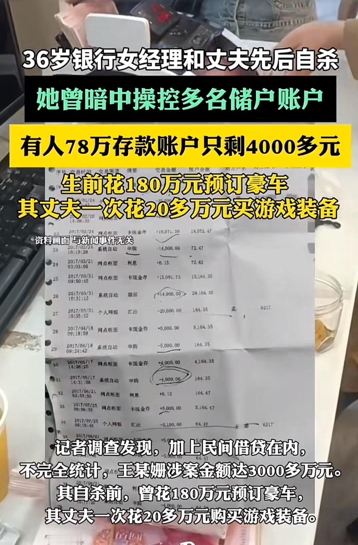银行女经理和丈夫先后自杀,背后的巨额资金黑洞太吓人了。想象一下,那得是多大的窟窿才会把人逼到绝路。也许他们是在资金运作里越陷越深,最后无力回天。 巨额资金黑洞就像个无底深渊,不知道吞噬了多少人的心血和希望。这背后可能涉及违规操作、金融诈骗之类的。说不定他们一开始只是想走个捷径,结果却掉进了万劫不复的陷阱。这也给金融行业敲响了警钟,监管必须得跟上,不然不知道还会有多少类似的悲剧发生。