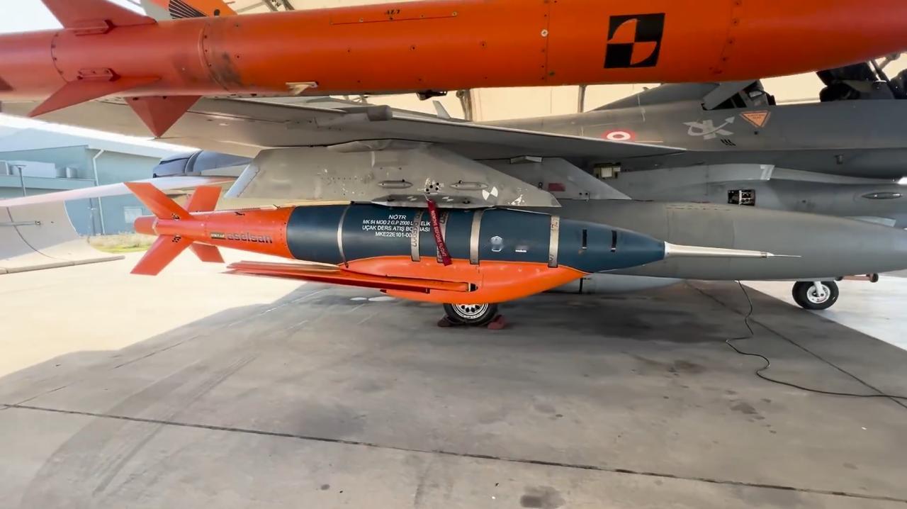 土耳其F-16战机测试KGK-84滑翔制导套件,精准命中目标。 该套件可将常规2000磅(907公斤)自由落体炸弹(如Mk84航弹)升级为精确制导滑翔炸弹。采用GPS/INS(全球定位+惯性导航)双模制导,圆概率误差小于10米,从高空投放时最大射程约110千米,从低空投放时最大射程约37千米。,