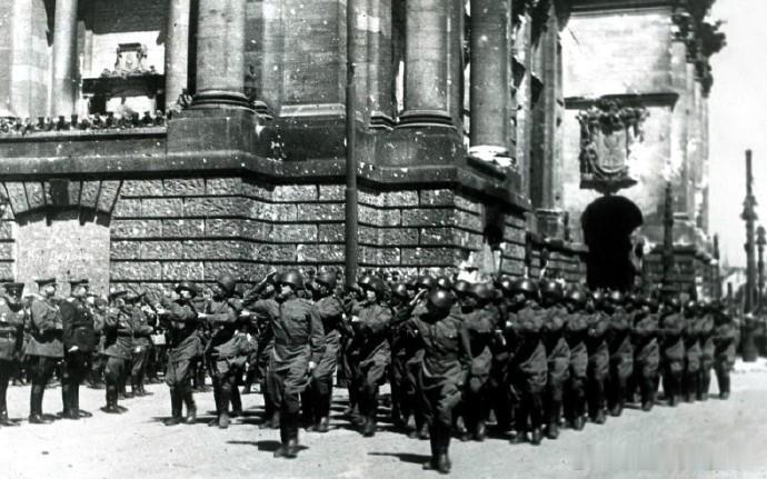照片中老老实实站在墙边的是抗日战争时期被八路军俘虏的两名日军。当时俗称“小鬼