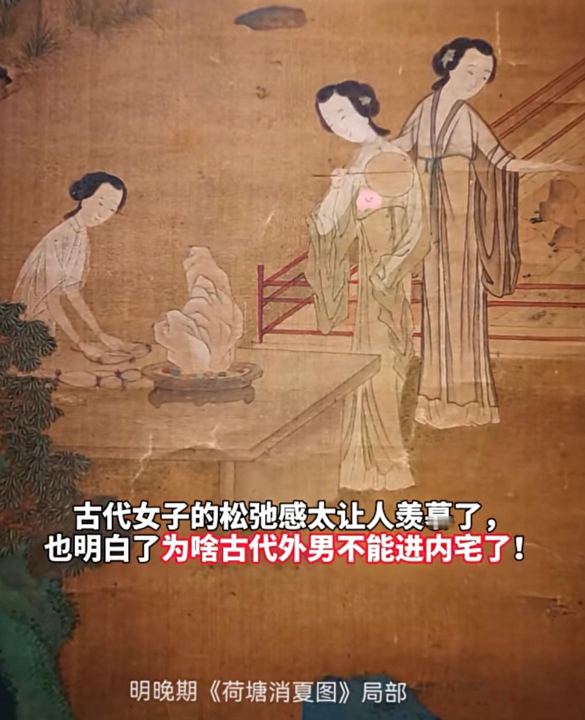 从古人避暑的古画中,来看看为什么外男不能进入内宅,因为夏天女子在内宅的私密空间中穿的很清凉,甚至可以说露点不少,到了需要打码的程度,这种情况下外男自然不适合也不能进入内宅。 古人 避暑 女士 内宅