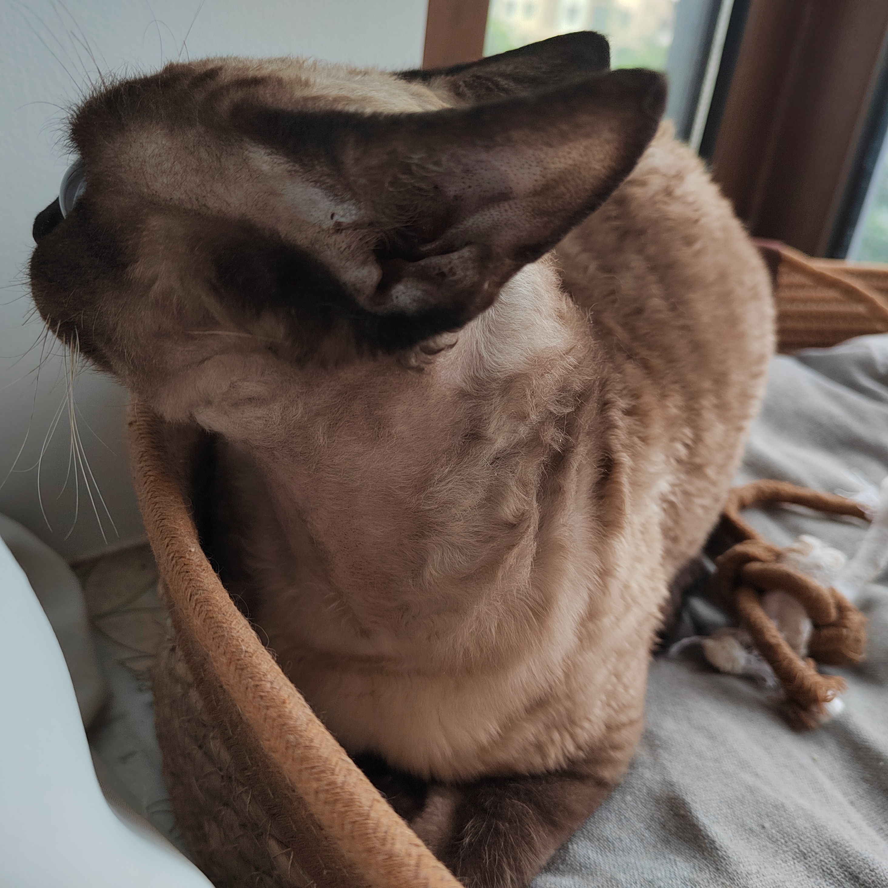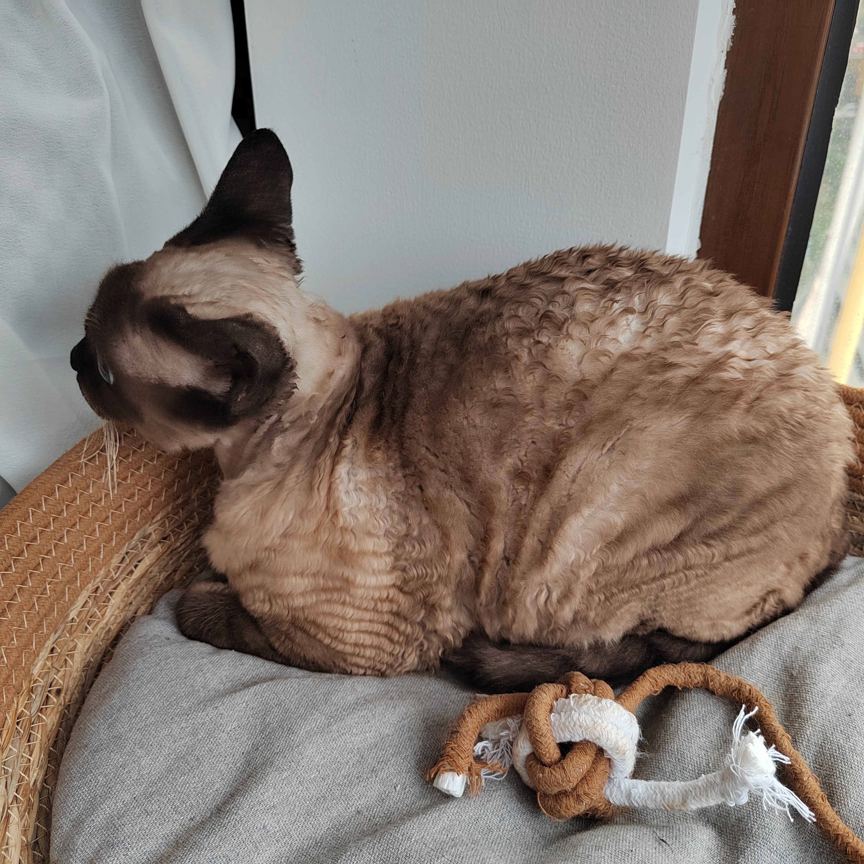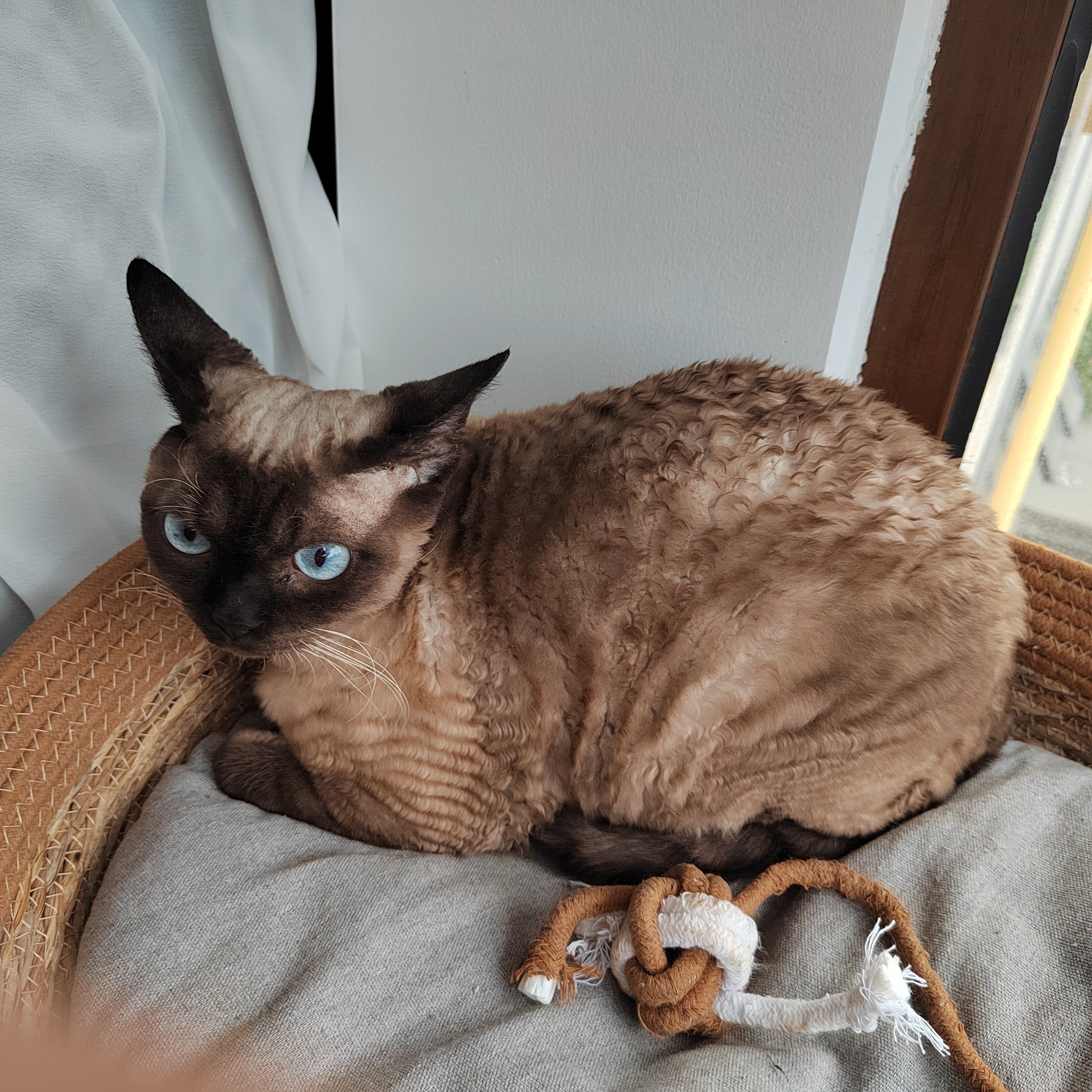 撸猫 周末的快乐是卷毛暹罗猫给的😻眼睛像藏着星辰大海,一身小卷毛软乎乎得像云朵。治愈感瞬间拉满,什么压力烦恼都被它一卷而空。果然,吸猫才是周末的最佳打开方式